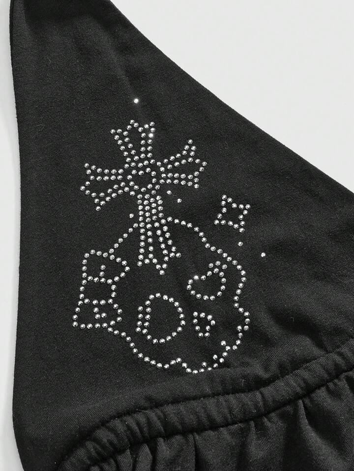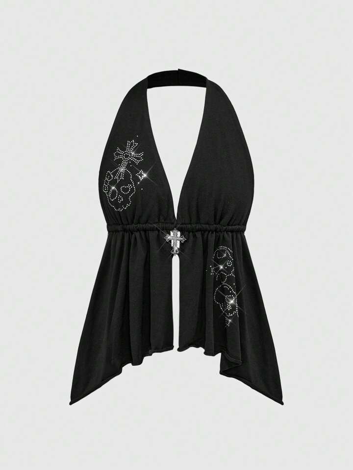 Y2K Sexy Katzenfigur Skelett Kreuz Strass Dekor rückenfrei Spaghetti-Träger Halskette für Frauen