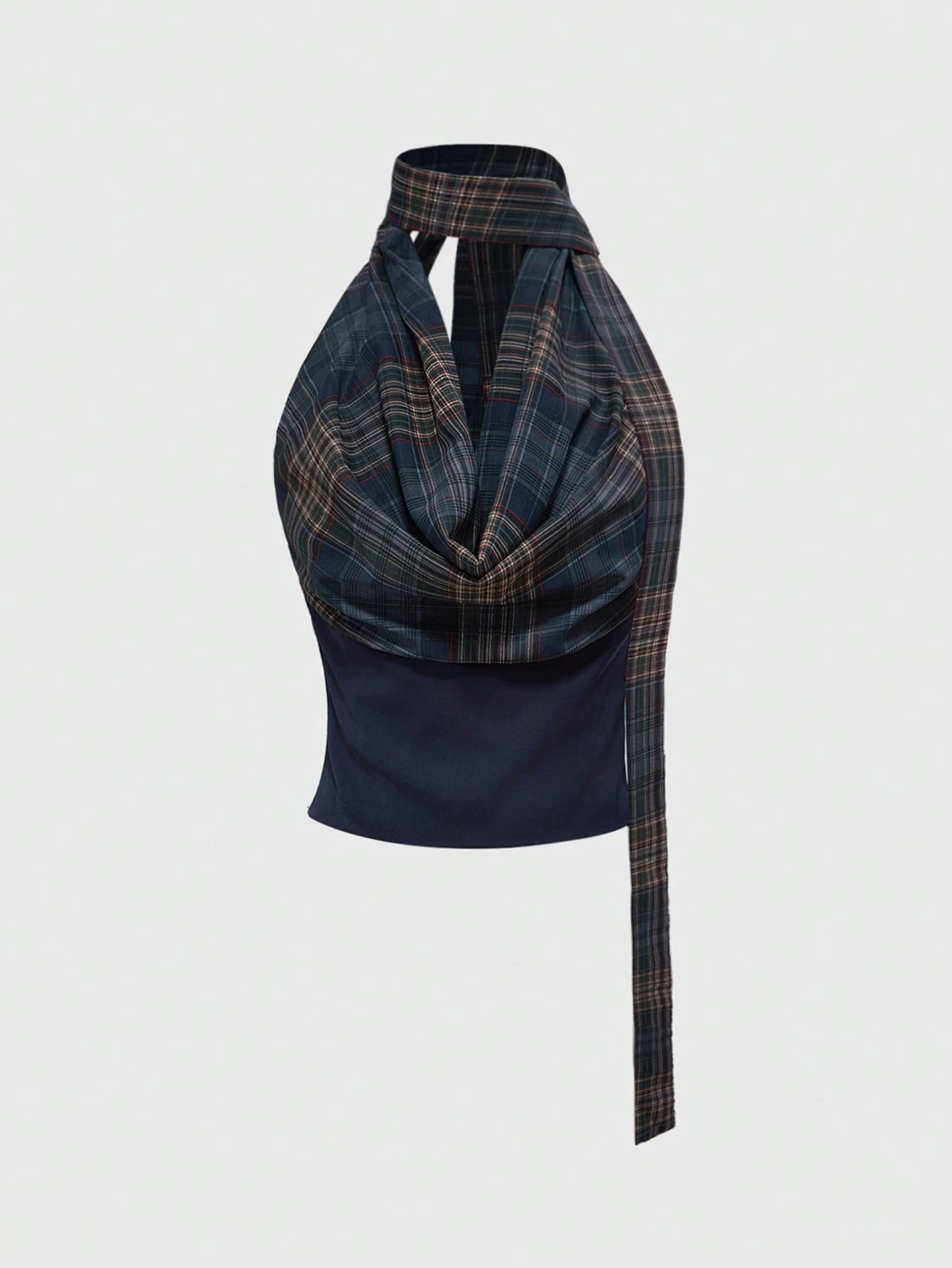 Y2K sexy modernes karierten Schal drapierter Ausschnitt Akzent geraffte Taille Trägershirt