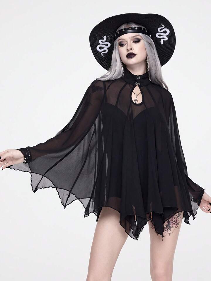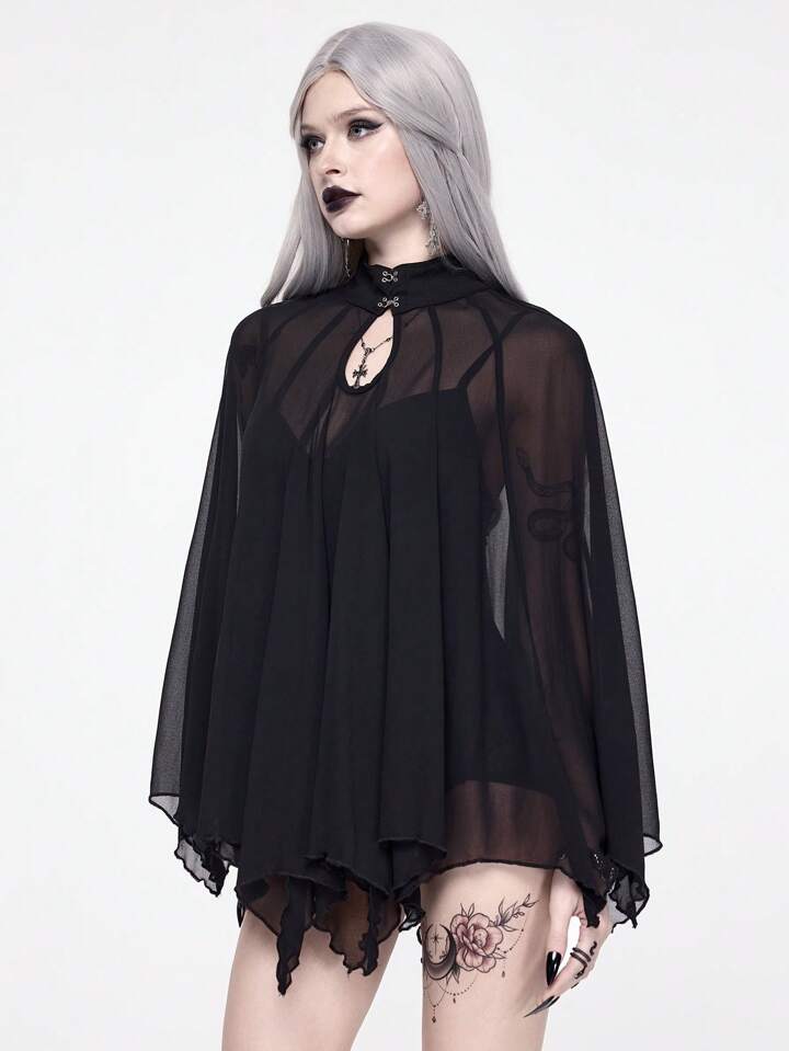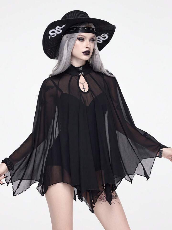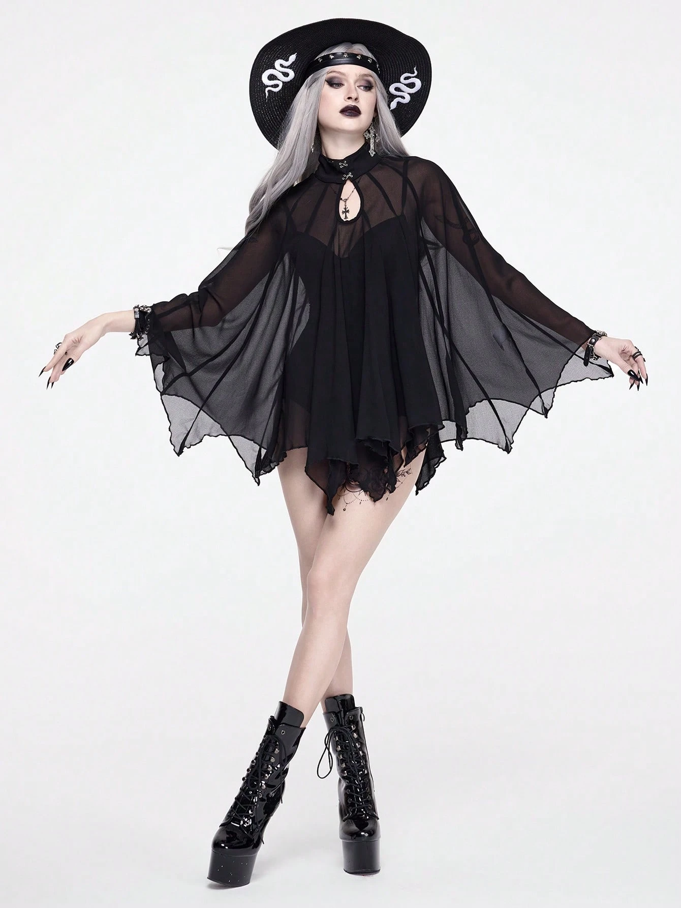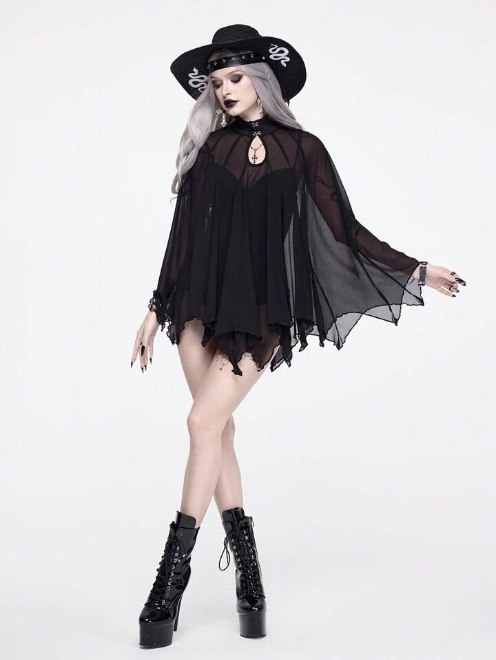 Y2K-Stil Beach Goth Fledermaus-förmige Mesh durchsichtige Strickjacke Bluse