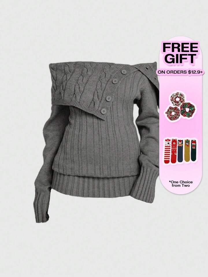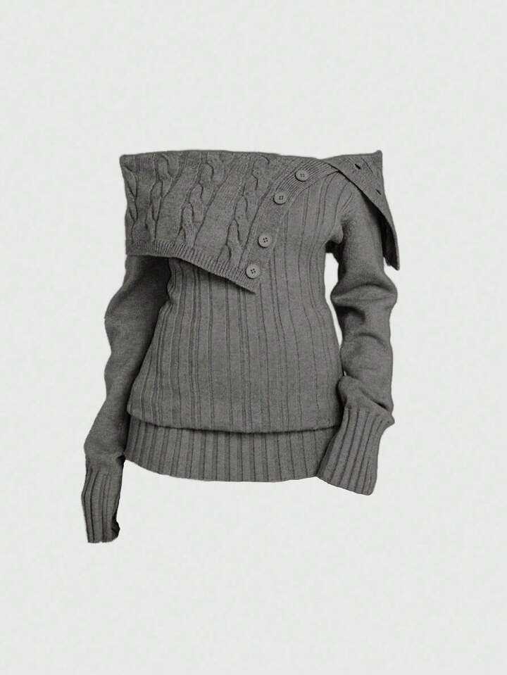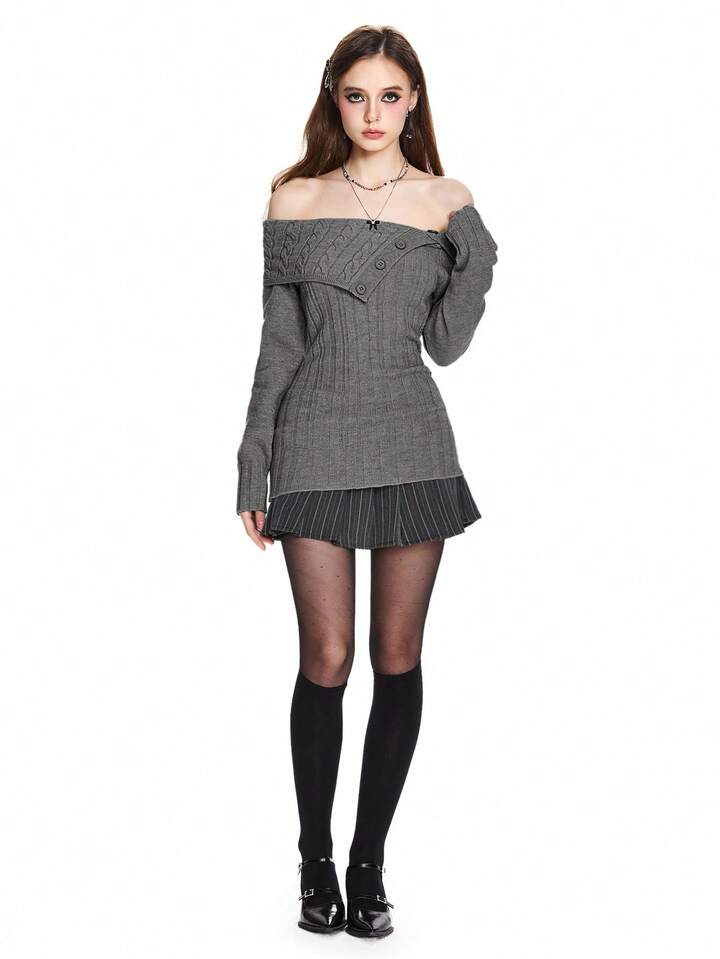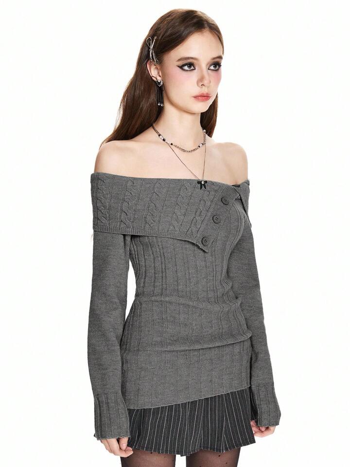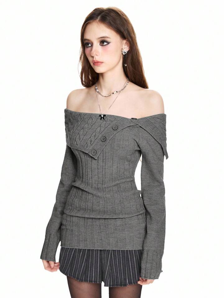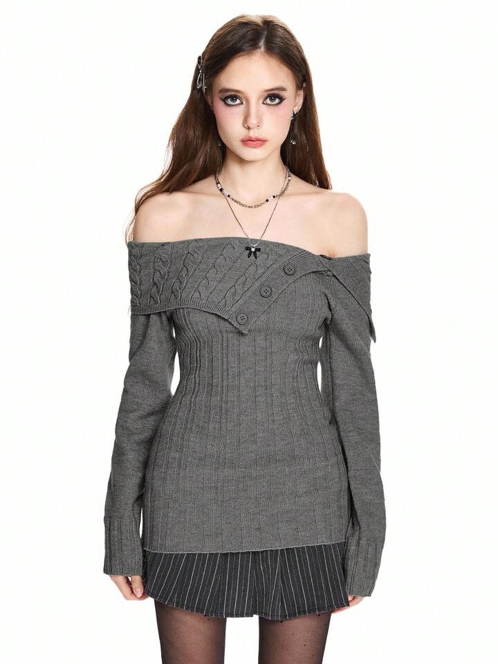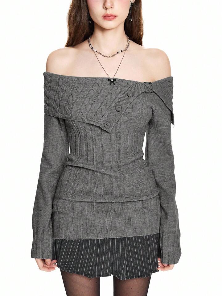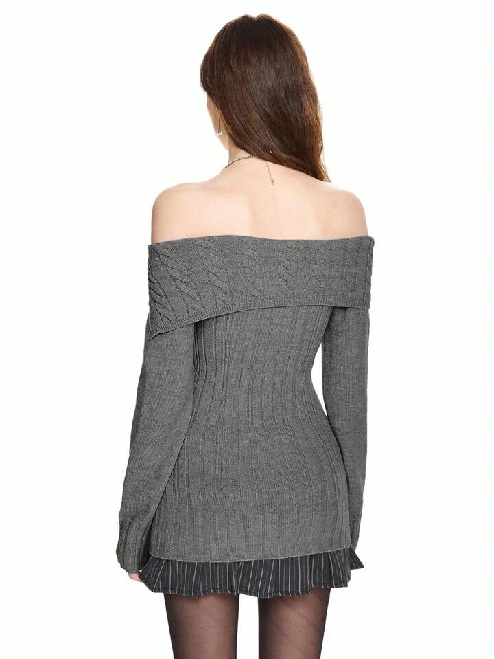 Y2K Stil Off-Shoulder gerippter Strickpullover mit Taillenraffung