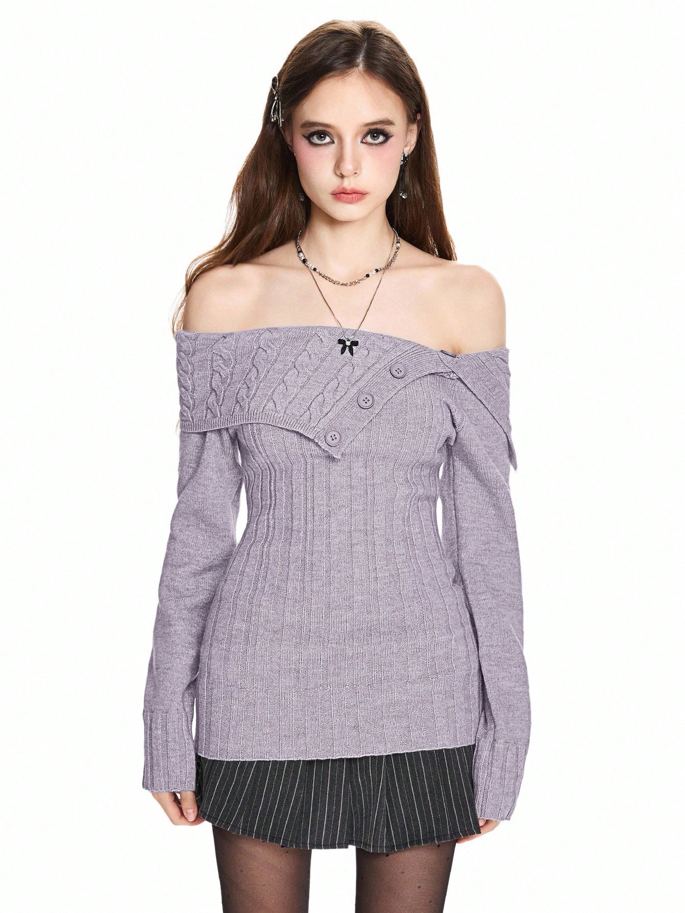 Y2K Stil Off-Shoulder gerippter Strickpullover mit Taillenraffung