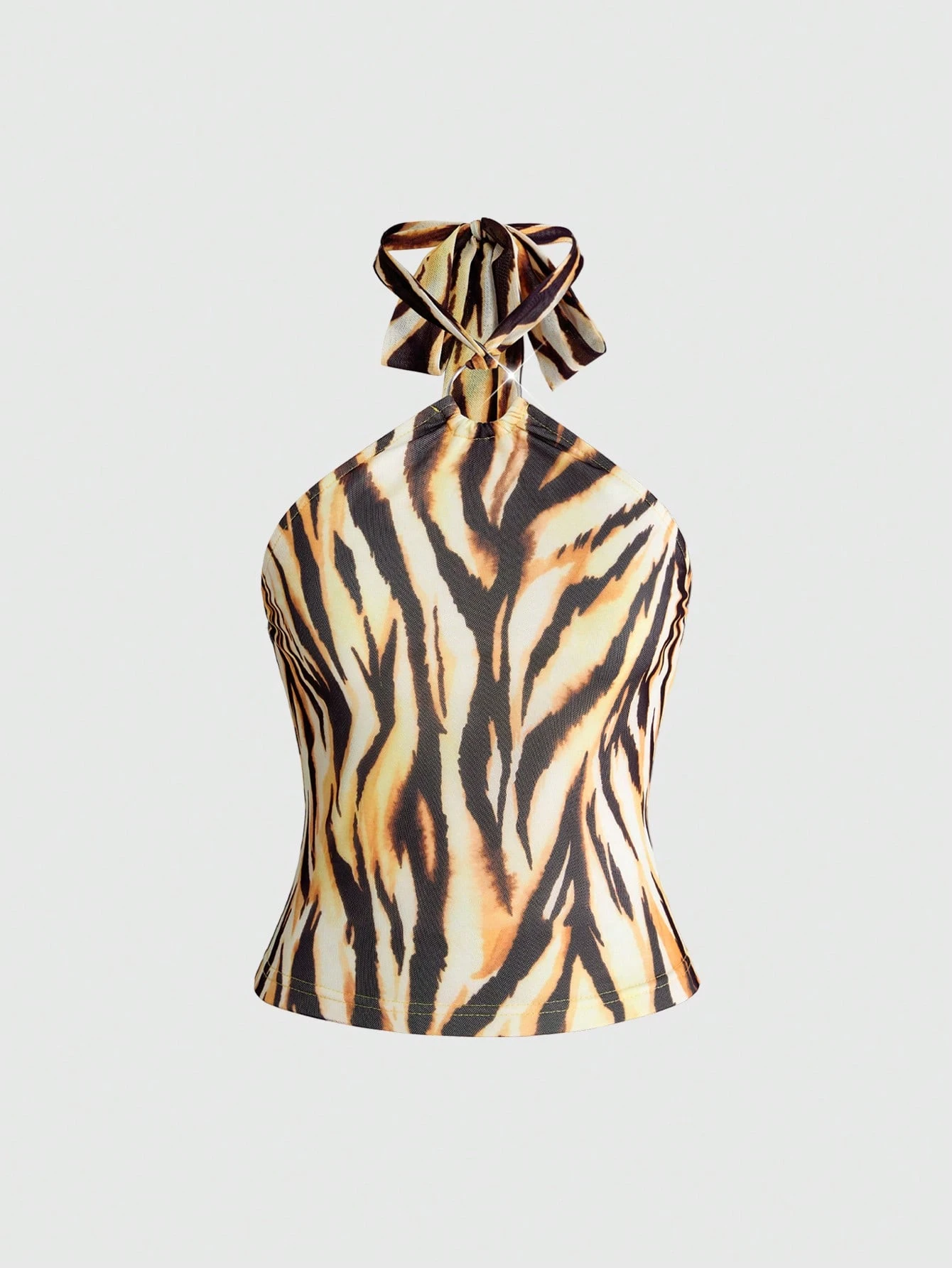 Y2K Gelbes Zebra-Muster erfrischende Sommer Crop Top für Frauen