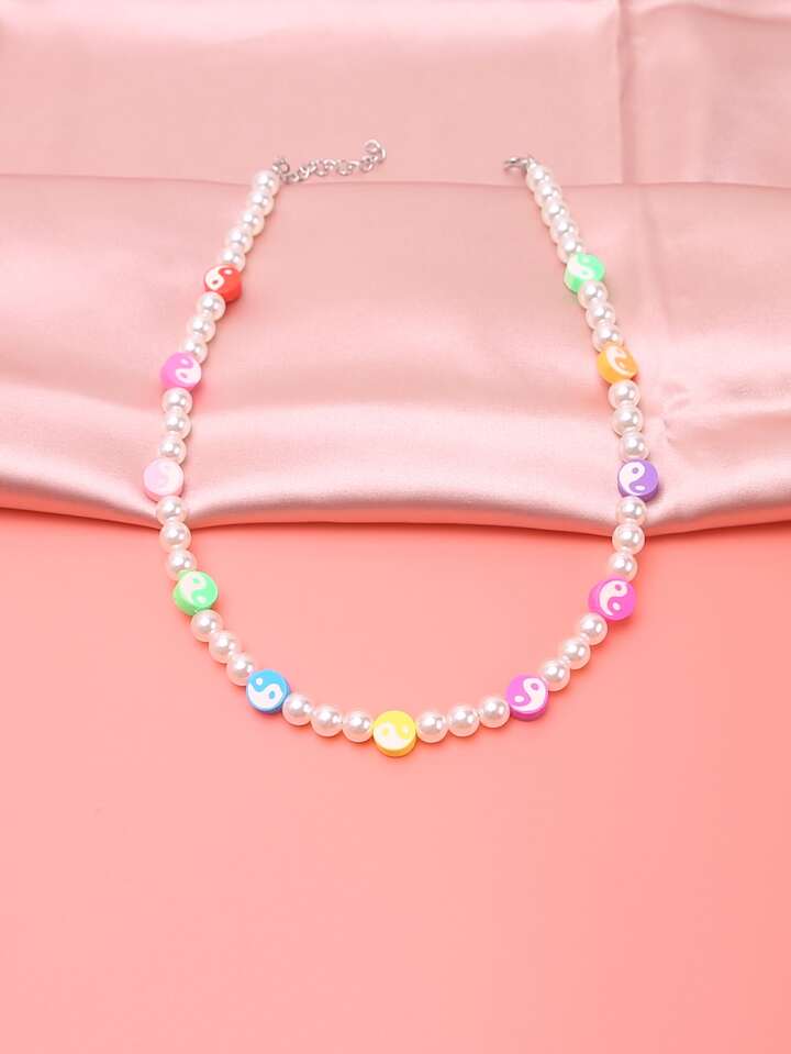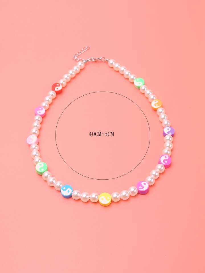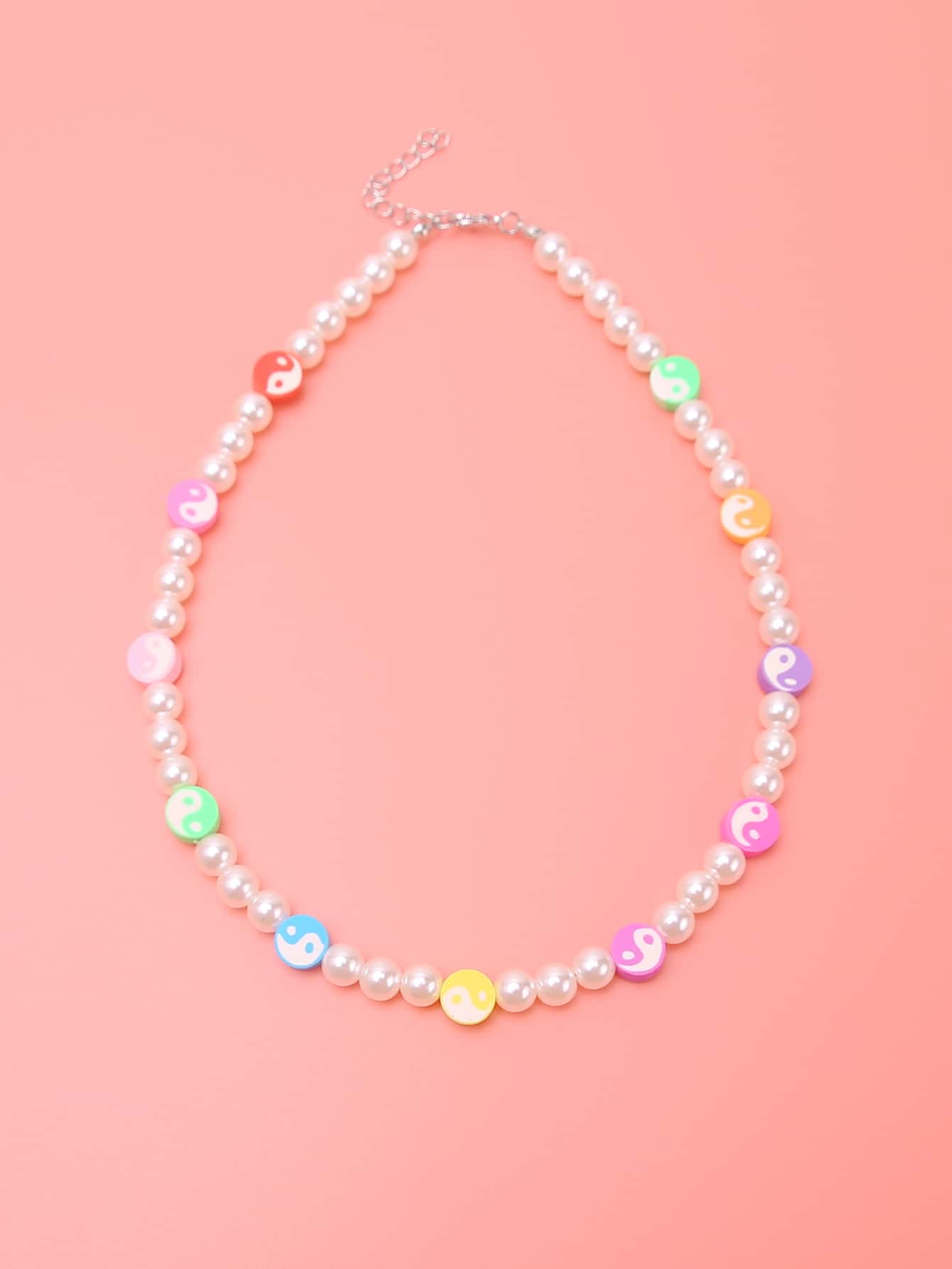 Halskette mit Yin & Yang Dekor, Kunstperle