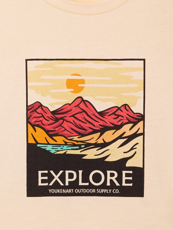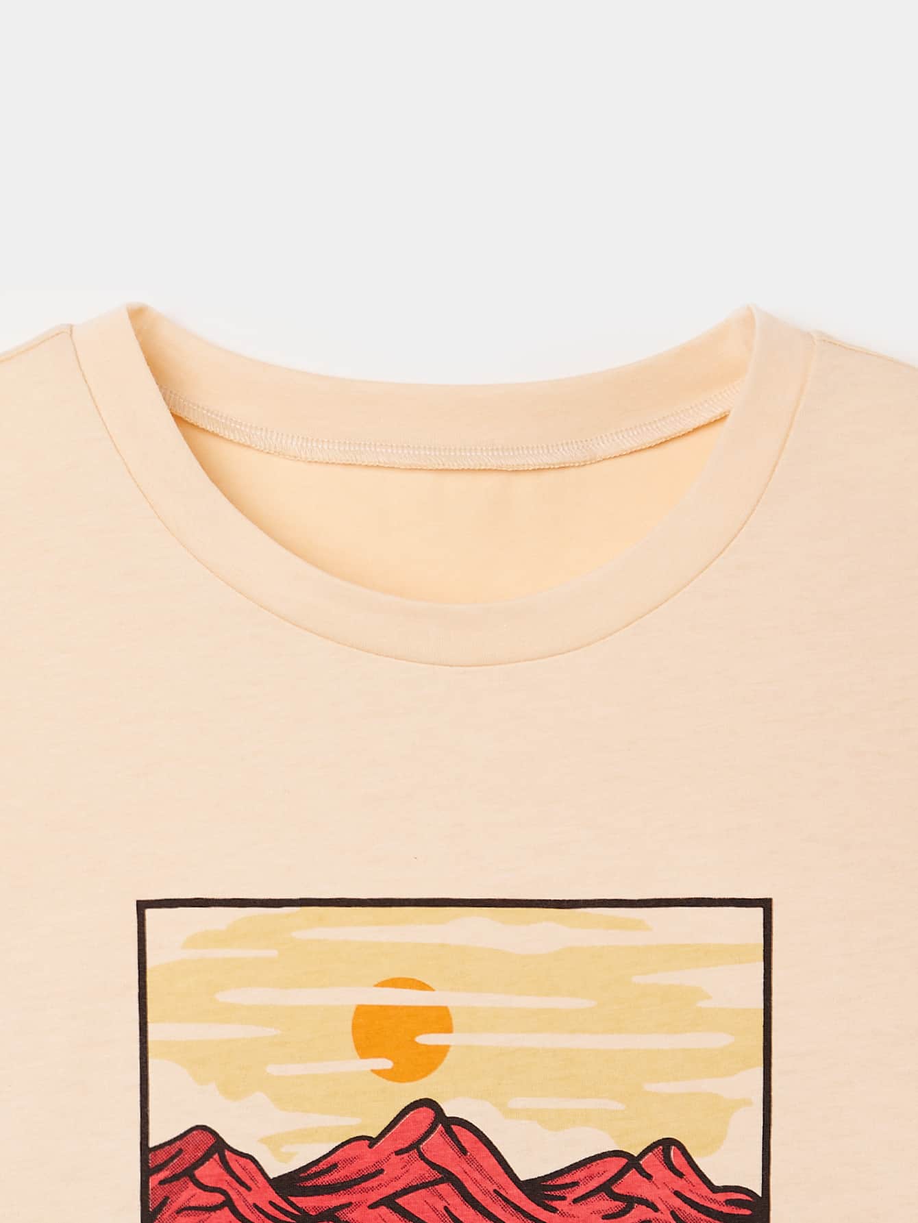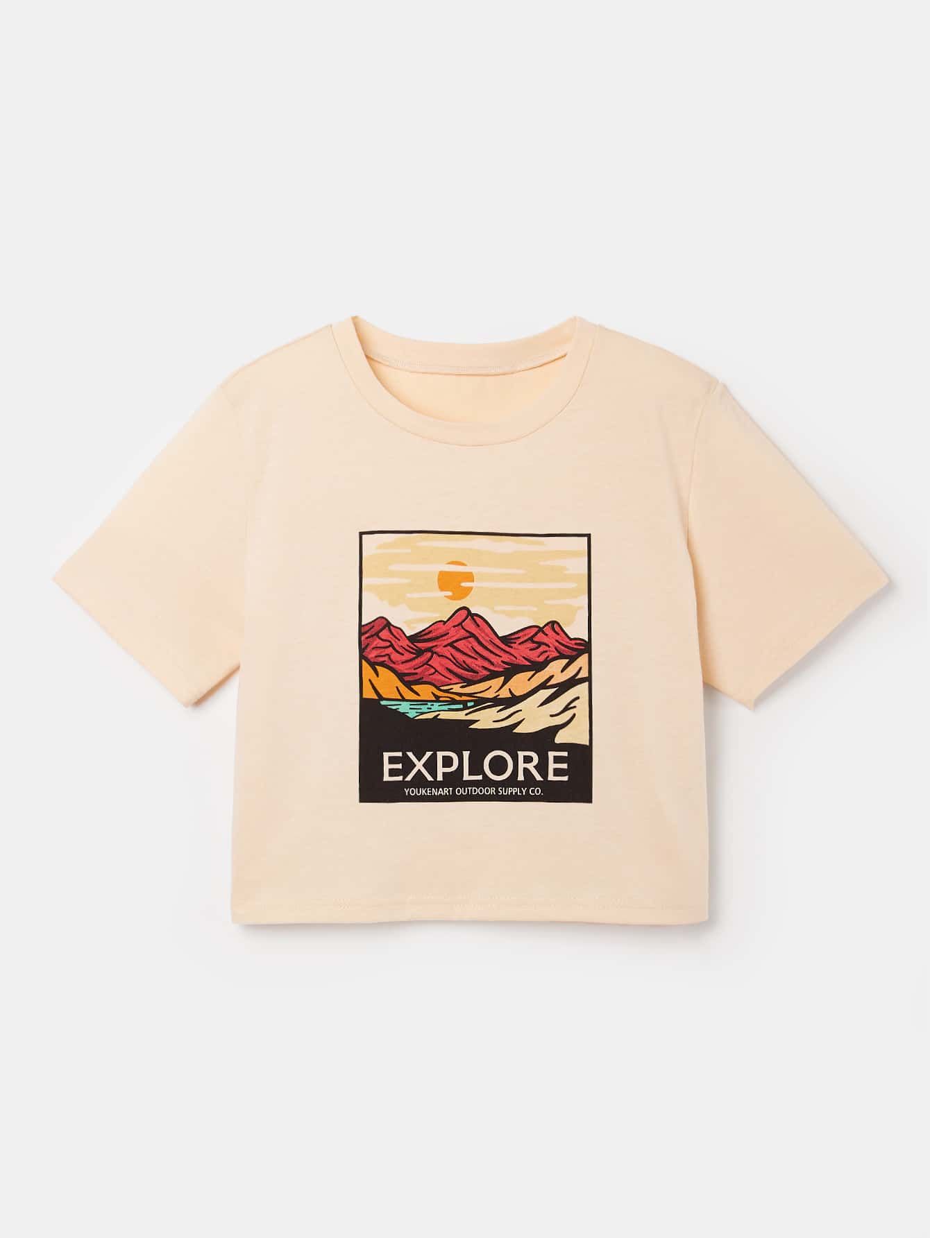 Youkenart Crop T-Shirt mit Buchstaben und Berg Grafik