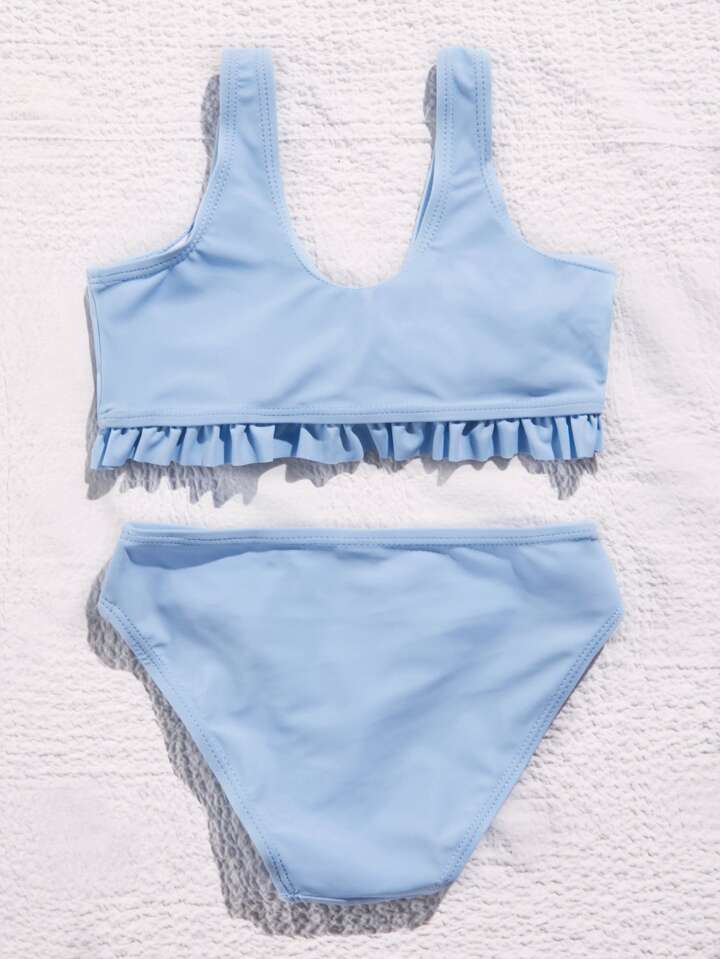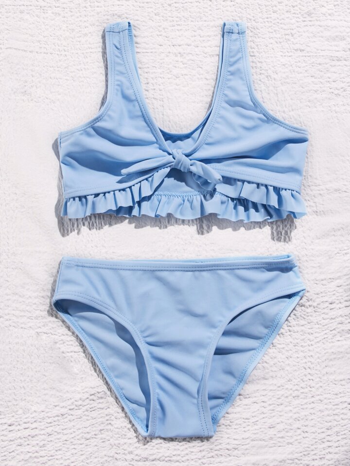 Kleine Mädchen Bikini Set mit Knotendetail vorne und Rüschensaum für den Sommer am Strand