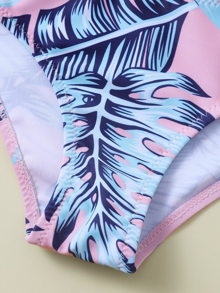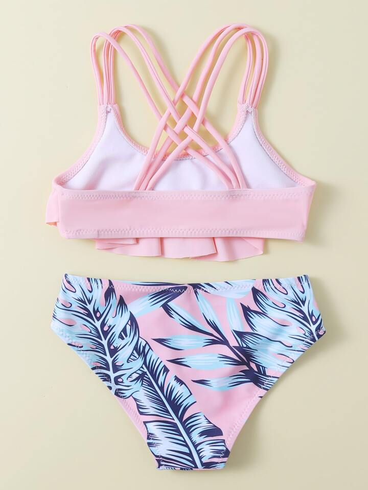 Kleine Mädchen Tropical Kreuz-Rücken Volant Bikini Set für Sommer und Strand