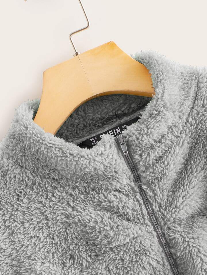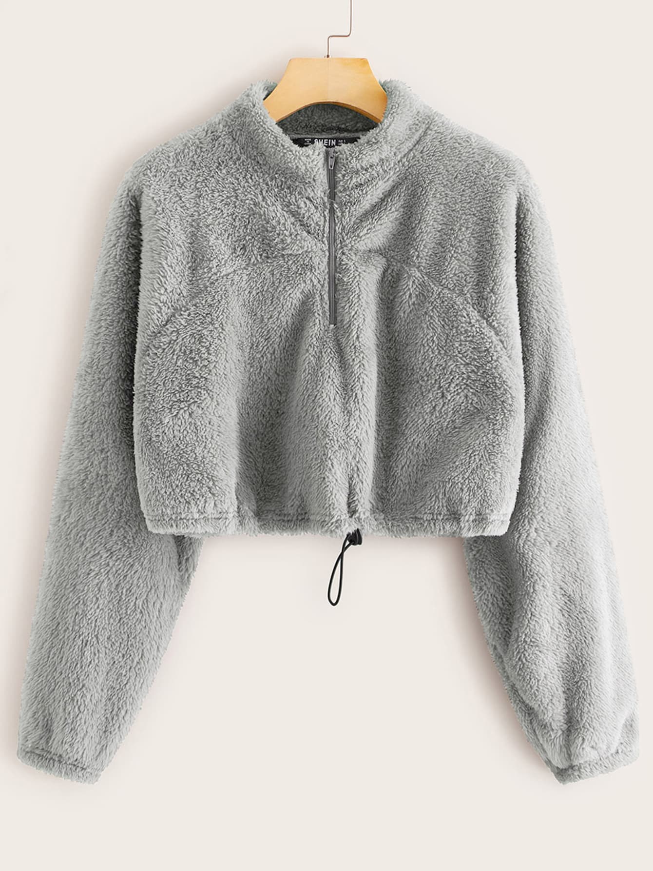 Teddy Pullover mit Reißverschluss und Kordelzug