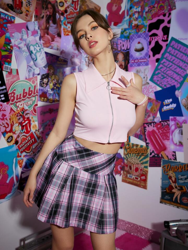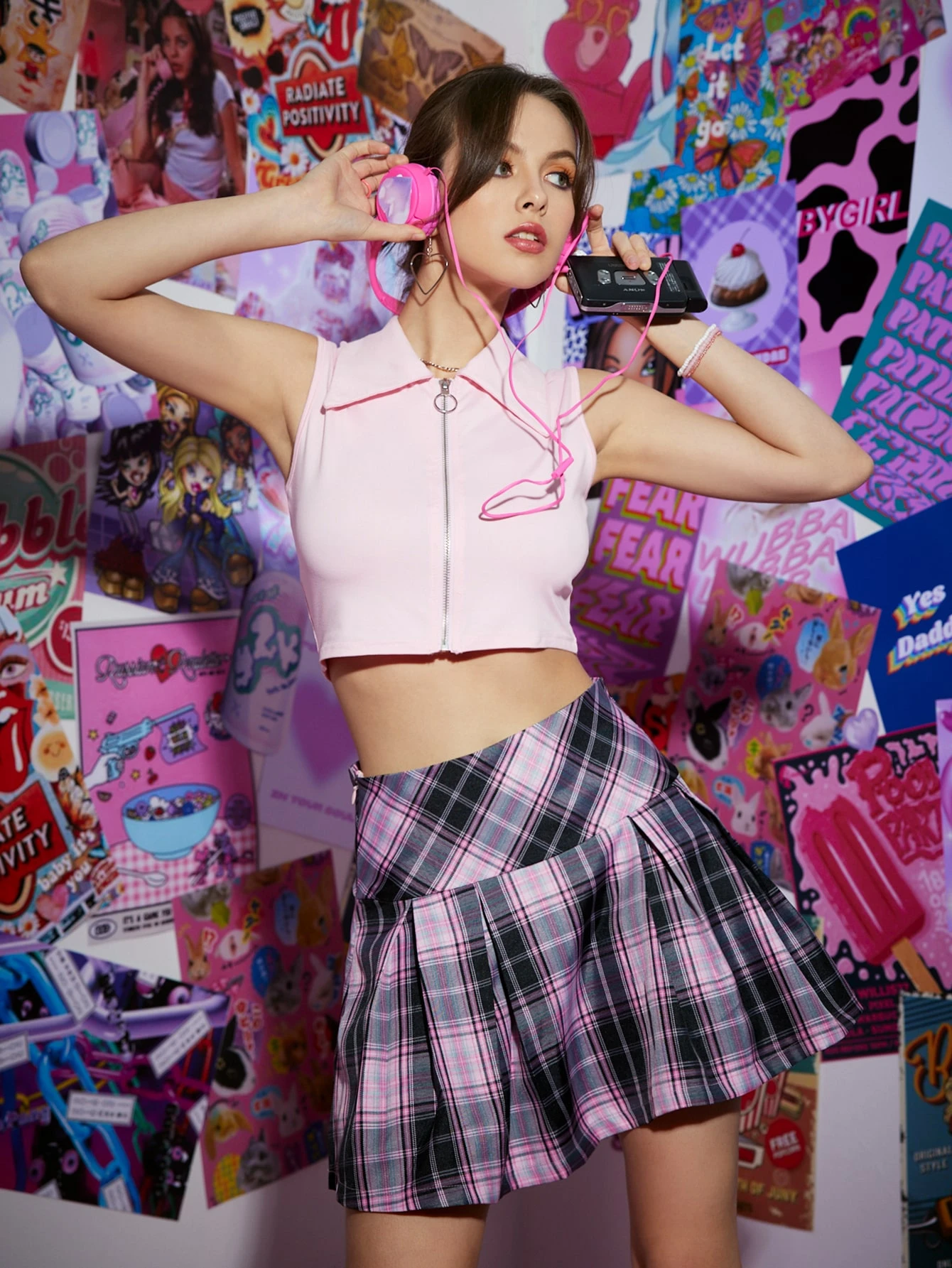 Tank Top mit Reißverschluss, & Rock mit Plaid Muster