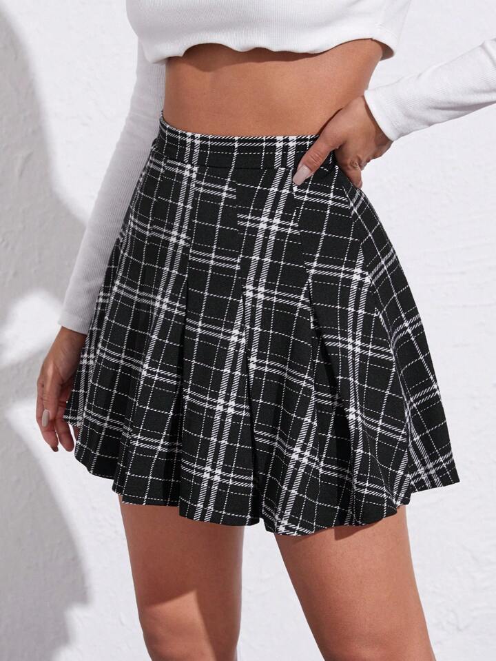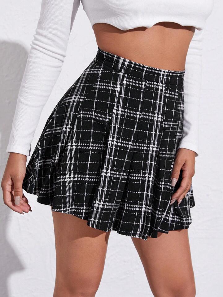 Rock mit seitlichem Reißverschluss, Karo Muster und Falten