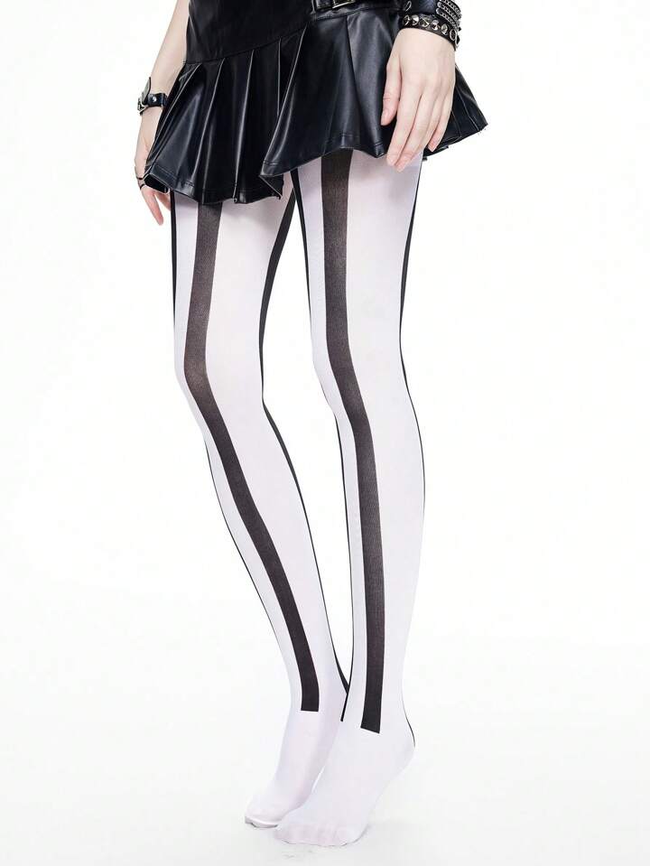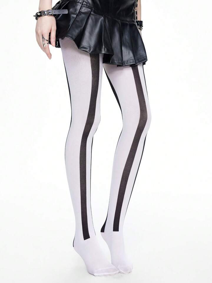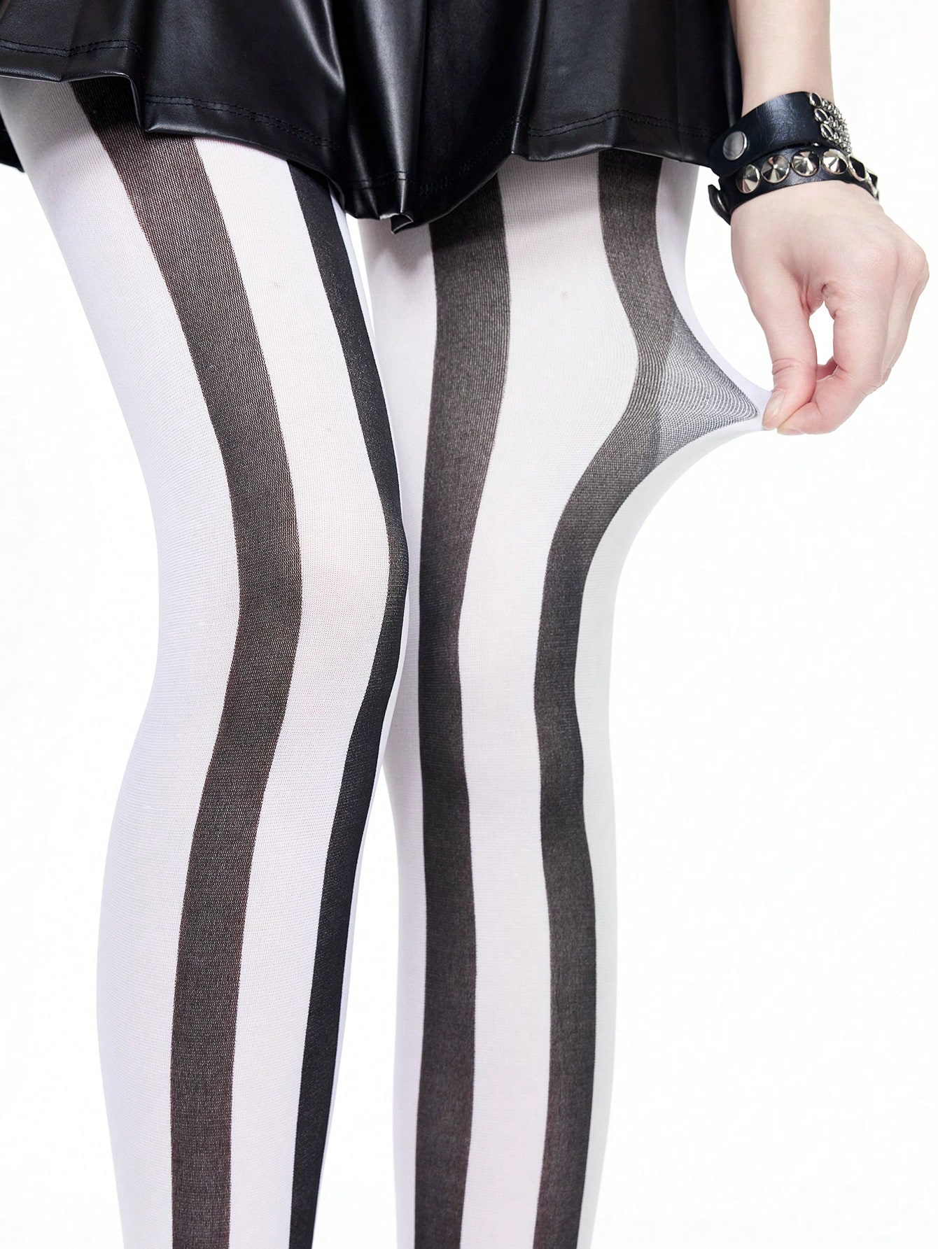 Goth 1 par de medias verticalmente rayadas en estilo gótico, negro y blanco