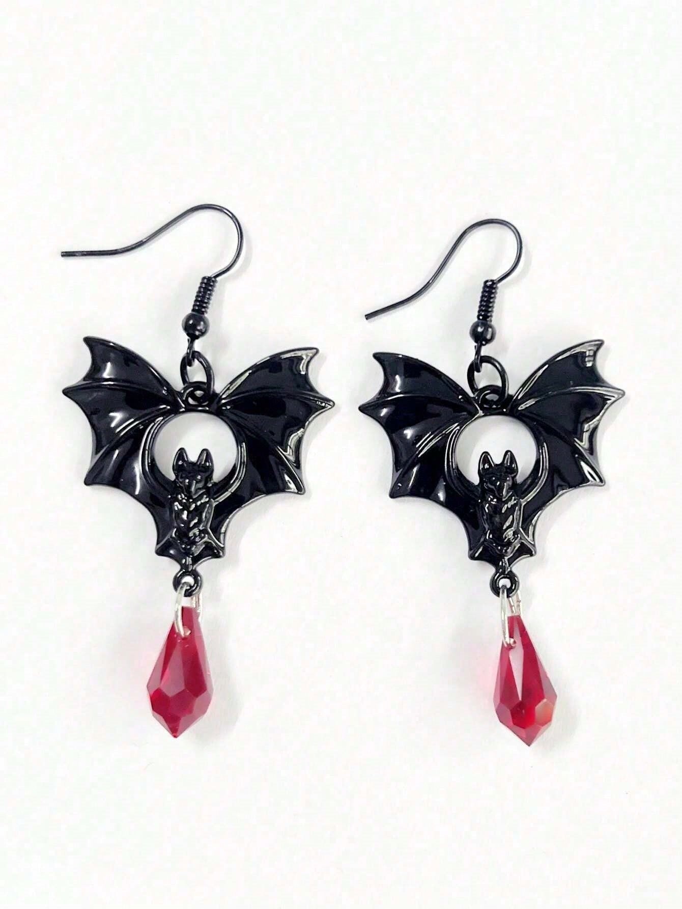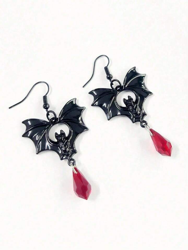Goth 1 par de pendientes colgantes góticos punk oscuros con murciélago negro y cristal rojo para mujeres
