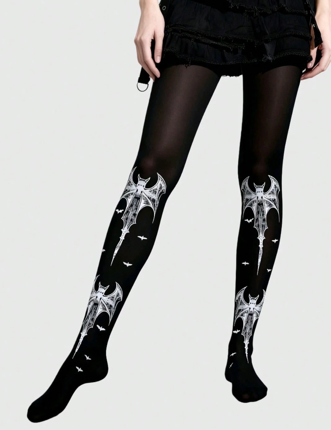 Goth 1 par de medias con estampado escocés oscuro y estampado de leopardo, estilo gótico