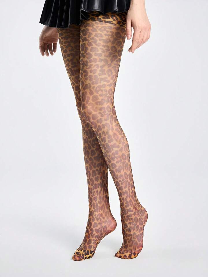 Goth 1 par de medias con estampado escocés oscuro y estampado de leopardo, estilo gótico