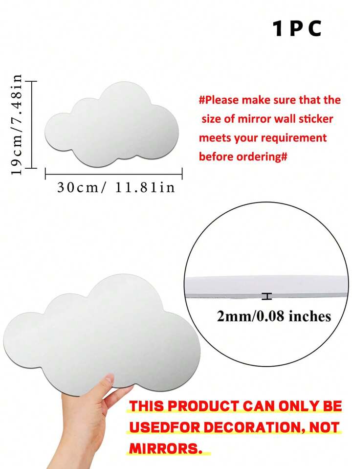 1 Pieza Espejo de Pared con Diseño de Nube, Material de Acrílico de 2mm de Grosor, Azulejo de Espejo 3D DIY, Adecuado para Dormitorio, Sala de Estar, Baño, Cocina, Pegatinas, Decoración de Pared, Decoración Vinílica para Decoración del Hogar, Artículos de Decoración de Primavera para Refrescar tu Hogar, Pegatinas de Decoración de Rama para Decoración de Pared, Espejo de Habitación, Decoración de Baño, Decoración de Sala de Estar