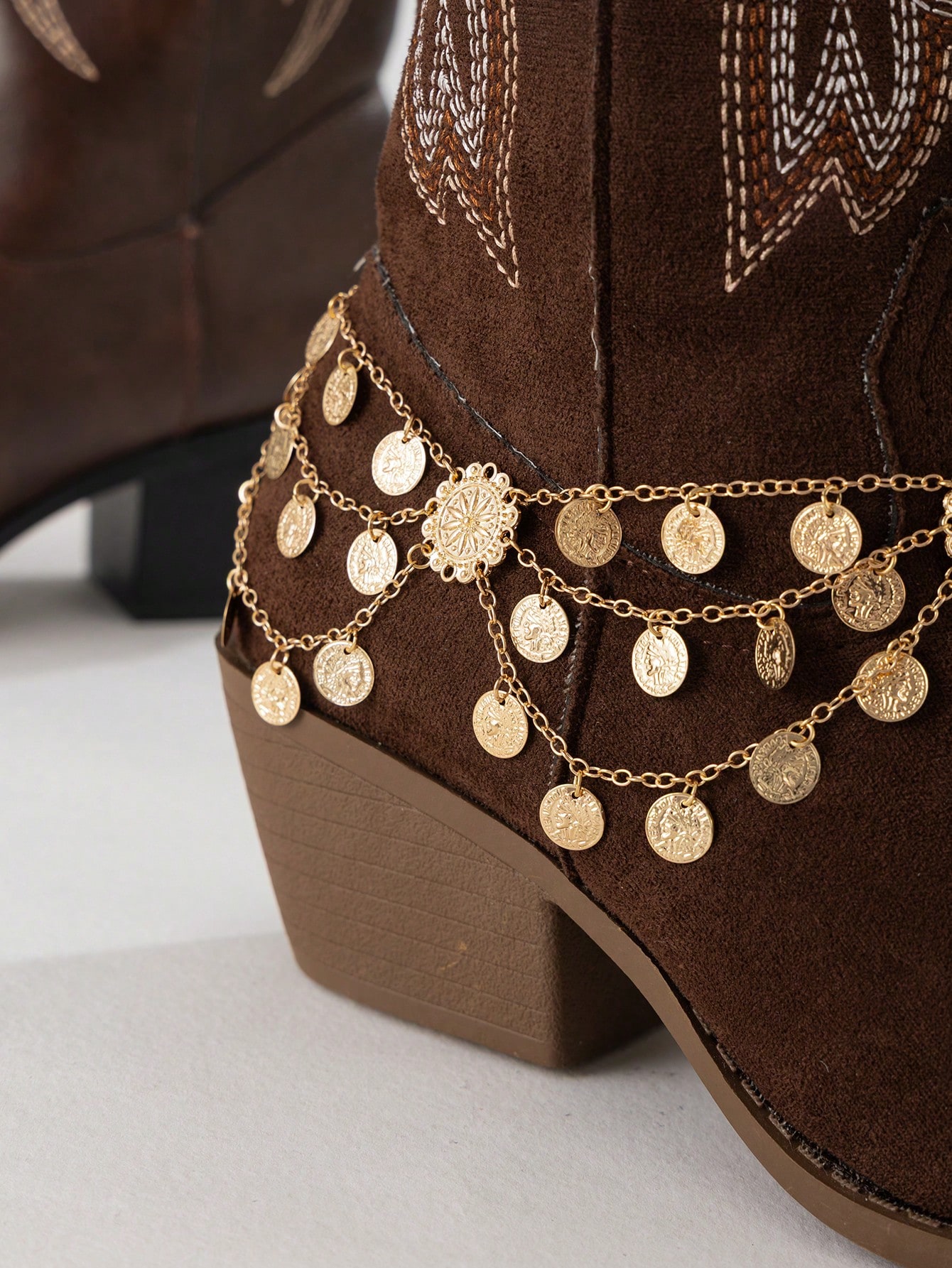 1 pieza Tobillera con flecos y lentejuelas con diseño geométrico minimalista retro para decoración de zapatos, accesorios bohemios, uso diario y fiestas, regalo para vacaciones