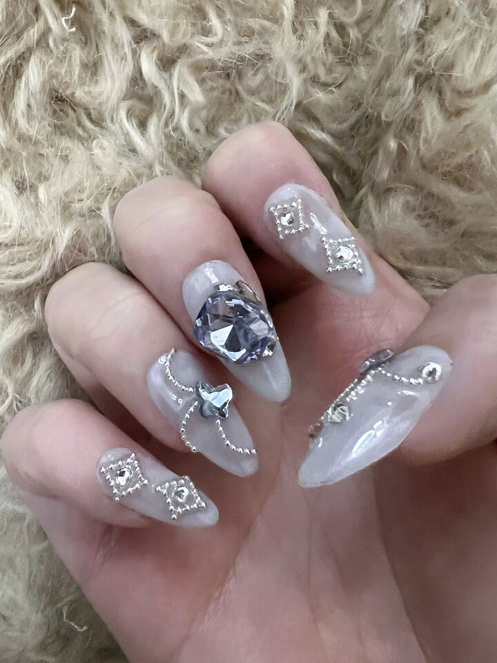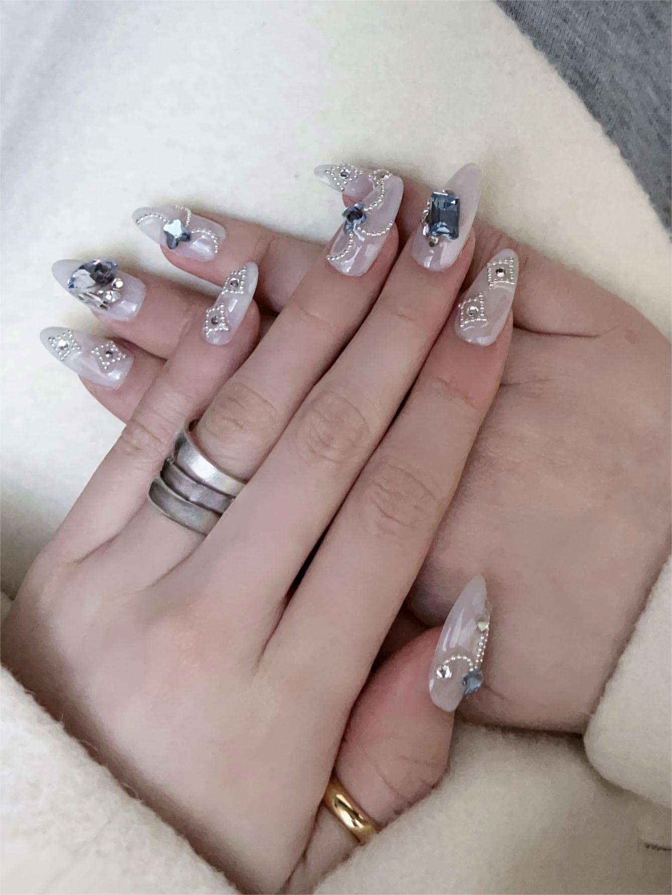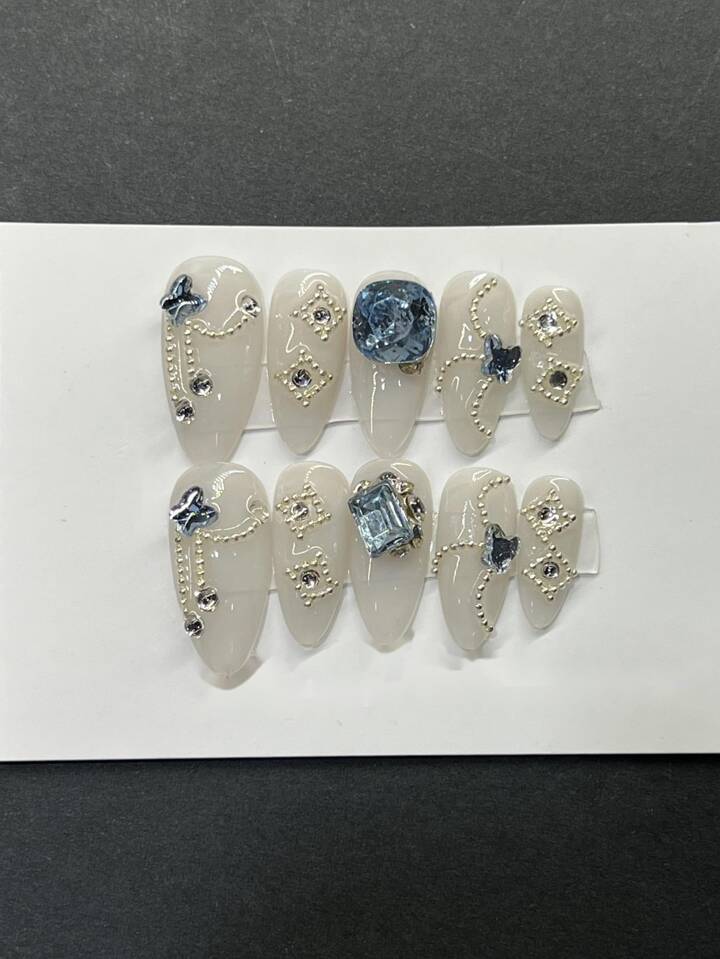 10 piezas largo almendra con mariposa 3D Uña postiza & 1 hoja cinta