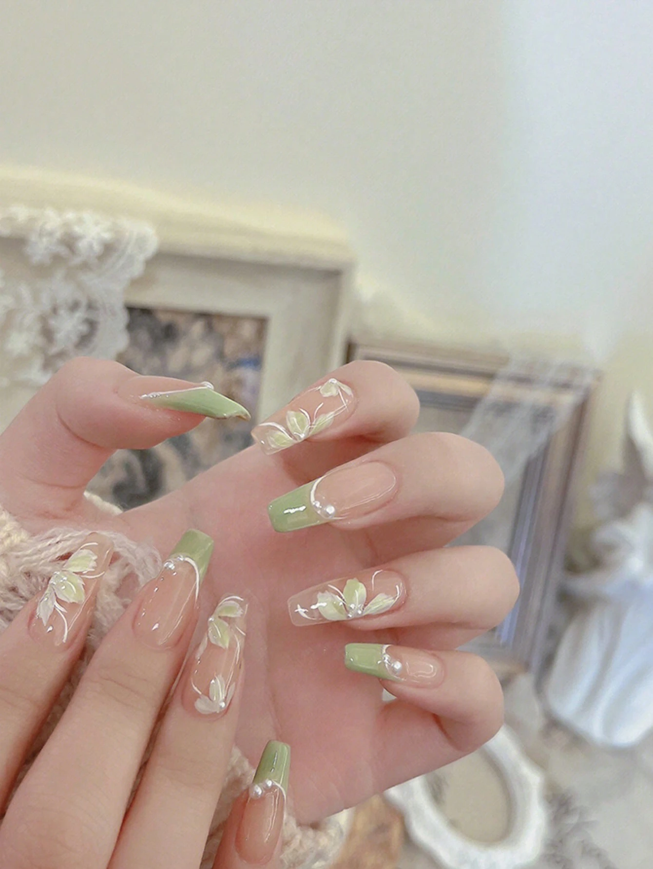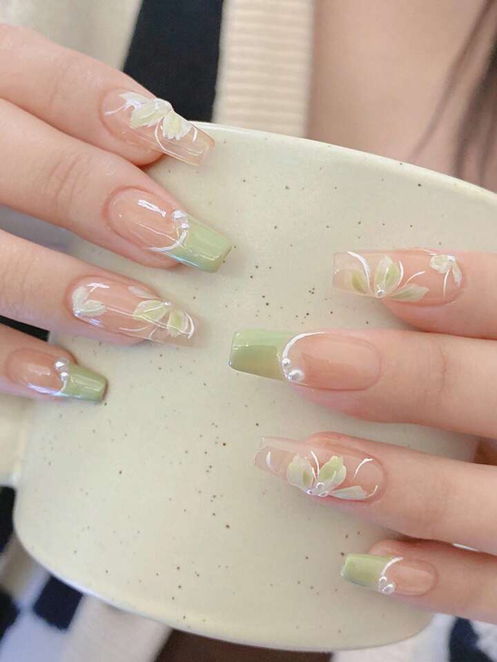 10 piezas largo ataúd 3d con diseño de flor Uña postiza & 1 hoja cinta