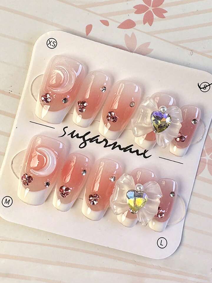 10 piezas Uñas falsas largo para francés manicura con , gelatina pegamento incluido