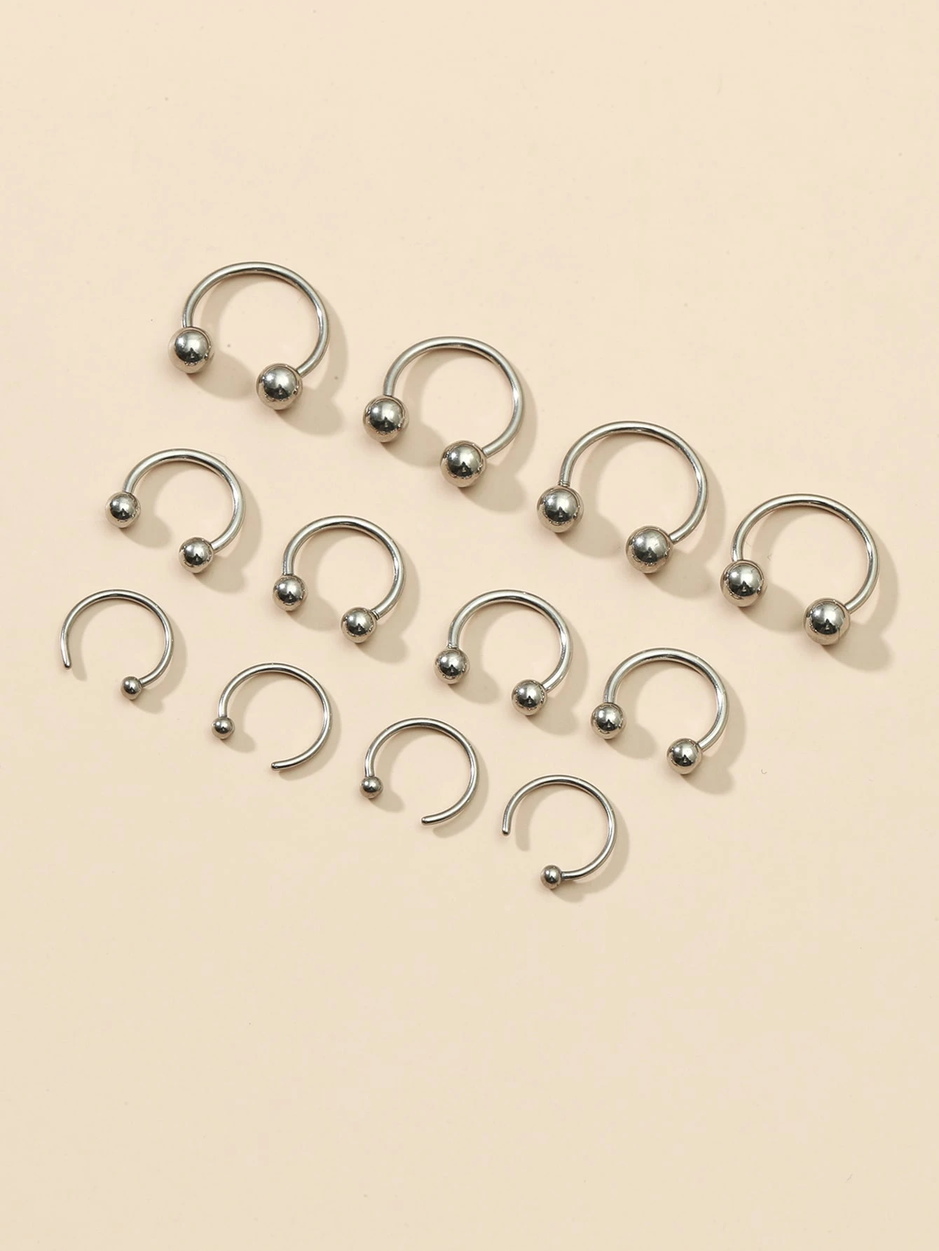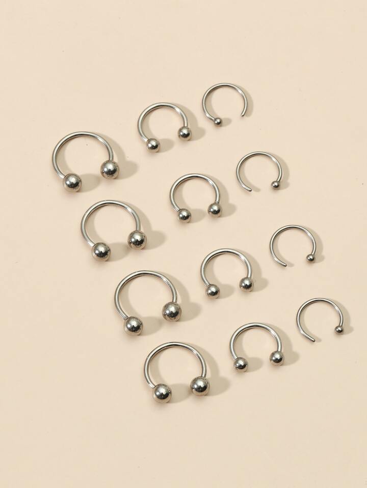 12 piezas/set anillo de nariz simple de acero inoxidable moda Punk Piercing perfecto para mujeres y hombres regalo de joyería corporal
