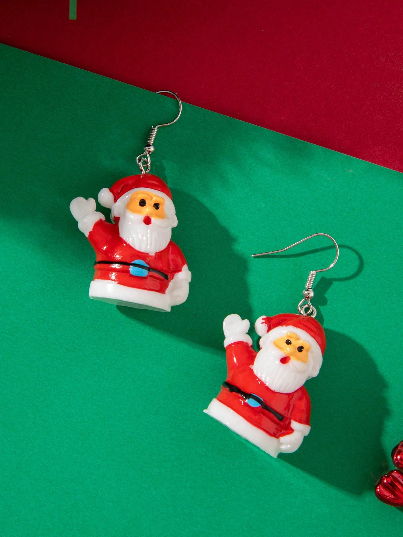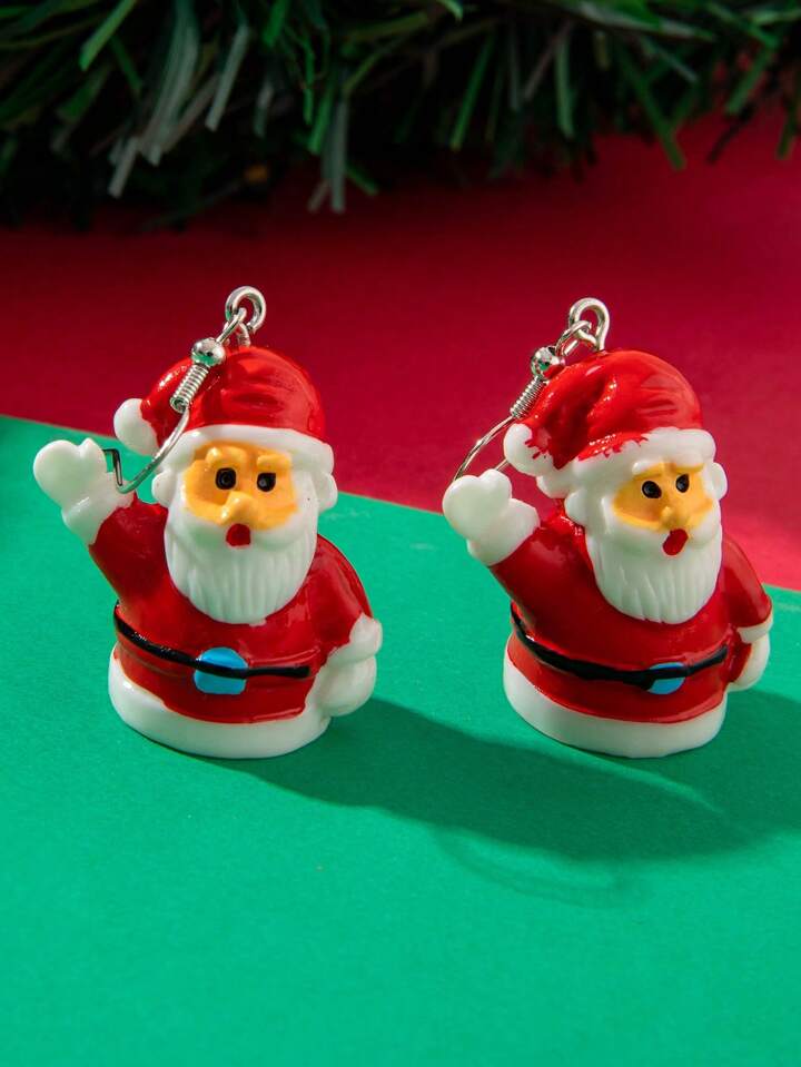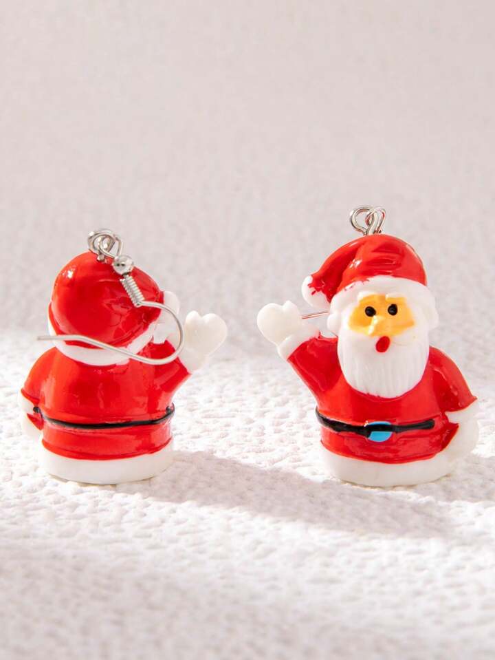 1 par dulce de resina Papá Noel ondulación con diseño de mano 3d Pendientes para mujeres , Navidad regalo