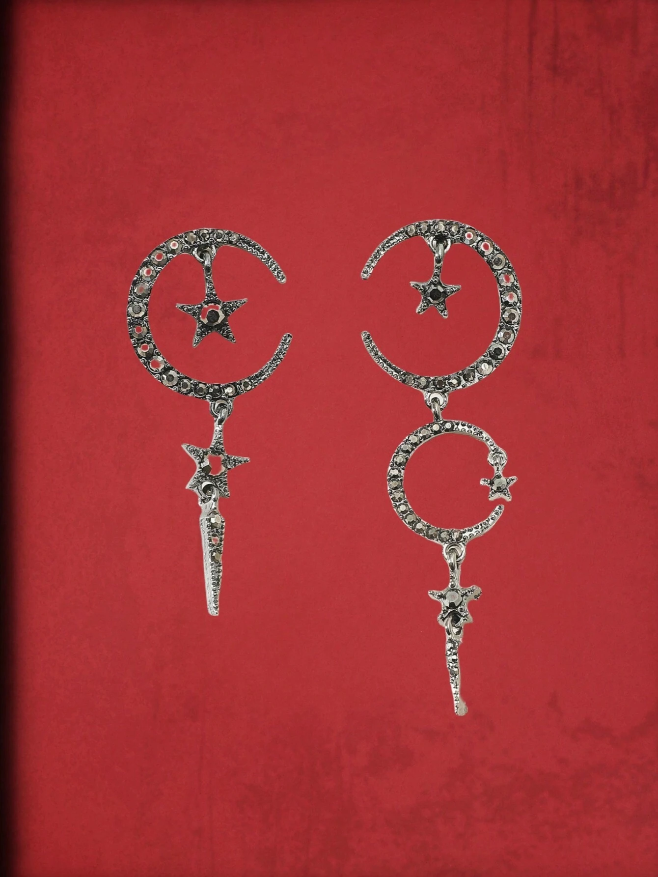 Goth 1 Par De Aretes Colgantes Con Forma De Estrella Y Luna De Estilo Gótico Oscuro Con Incrustaciones De Pedrería