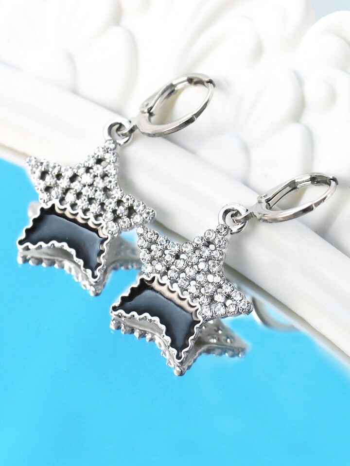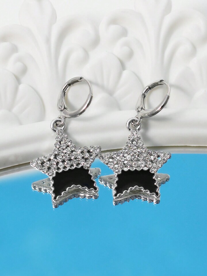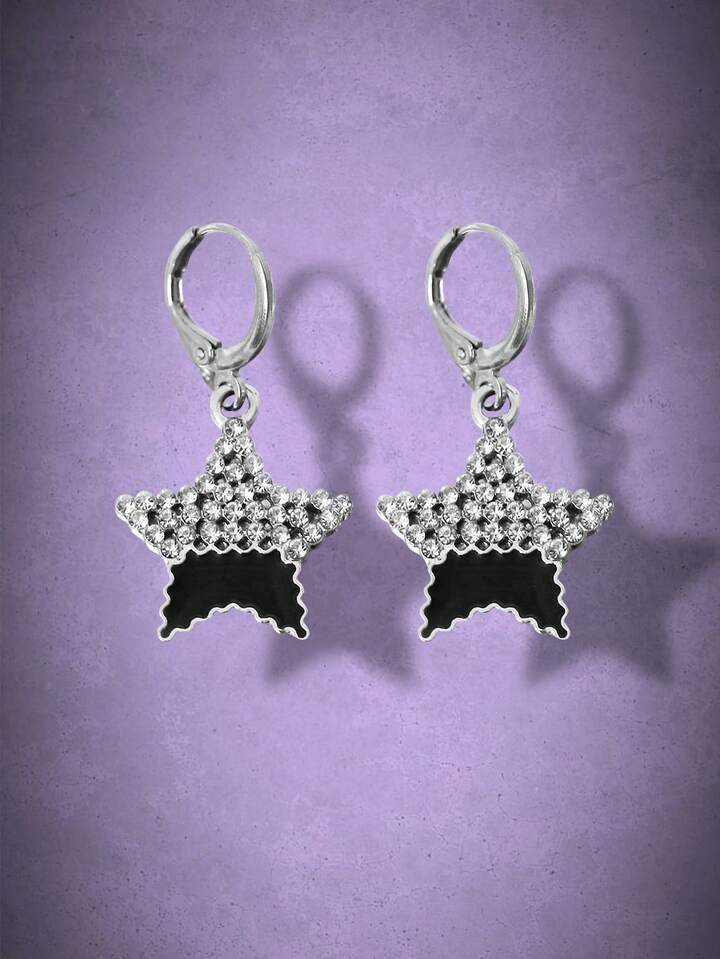 Goth 1 par Pendientes estilo gótico oscuro negro con estrella colgante
