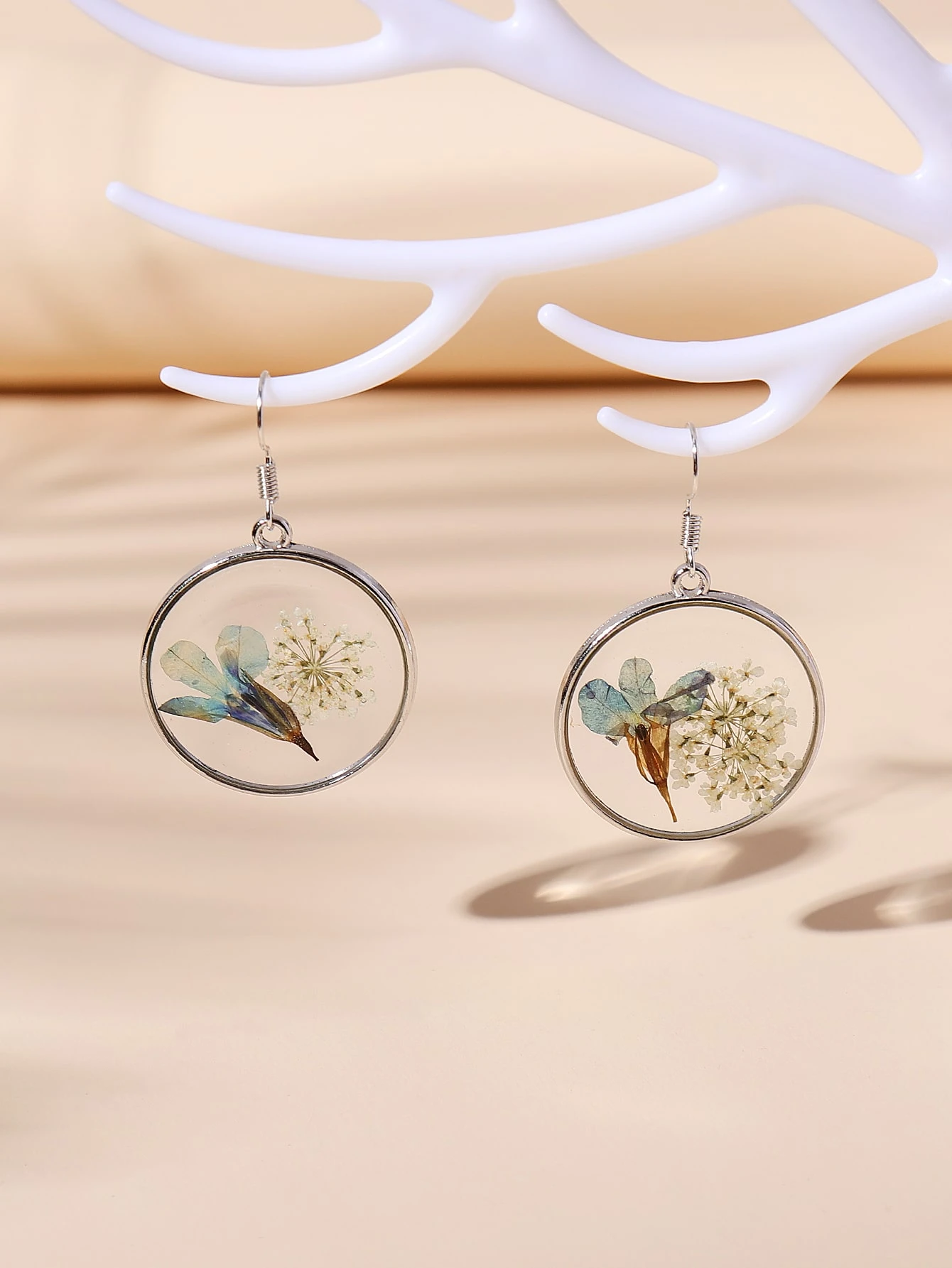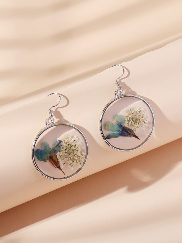 1 par de pendientes simples de Metal con forma de flor seca y muestra de planta (Color de flor aleatorio) para uso diario de mujer, fiesta en la playa