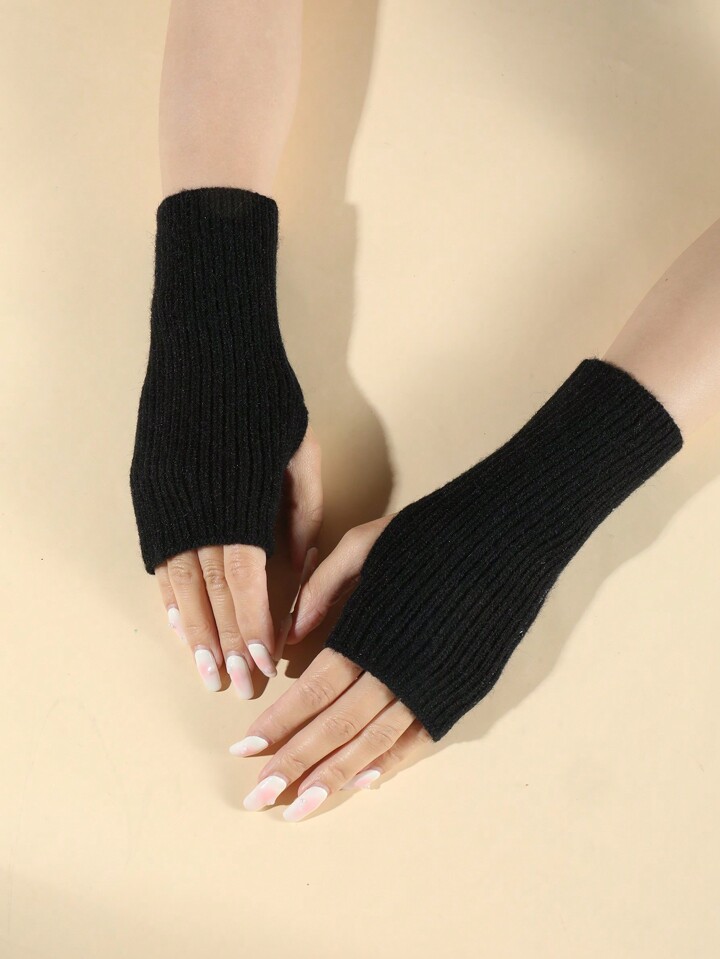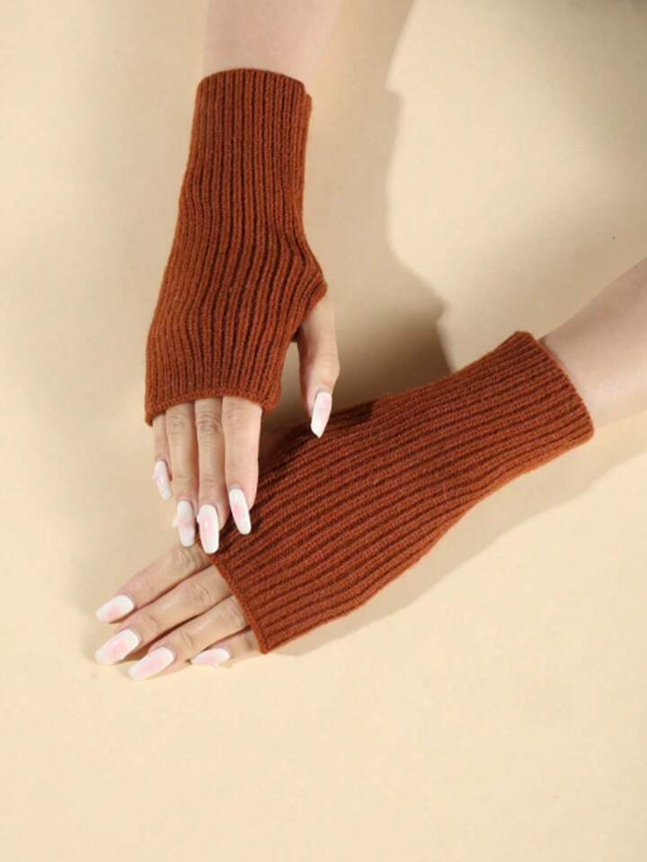1 Par De Gruesos Y Cálidos Guantes De Mujer De Punto Sin Dedos, Muñequeras Elegantes Cálidas Para Actividades Al Aire Libre De Otoño Y Invierno