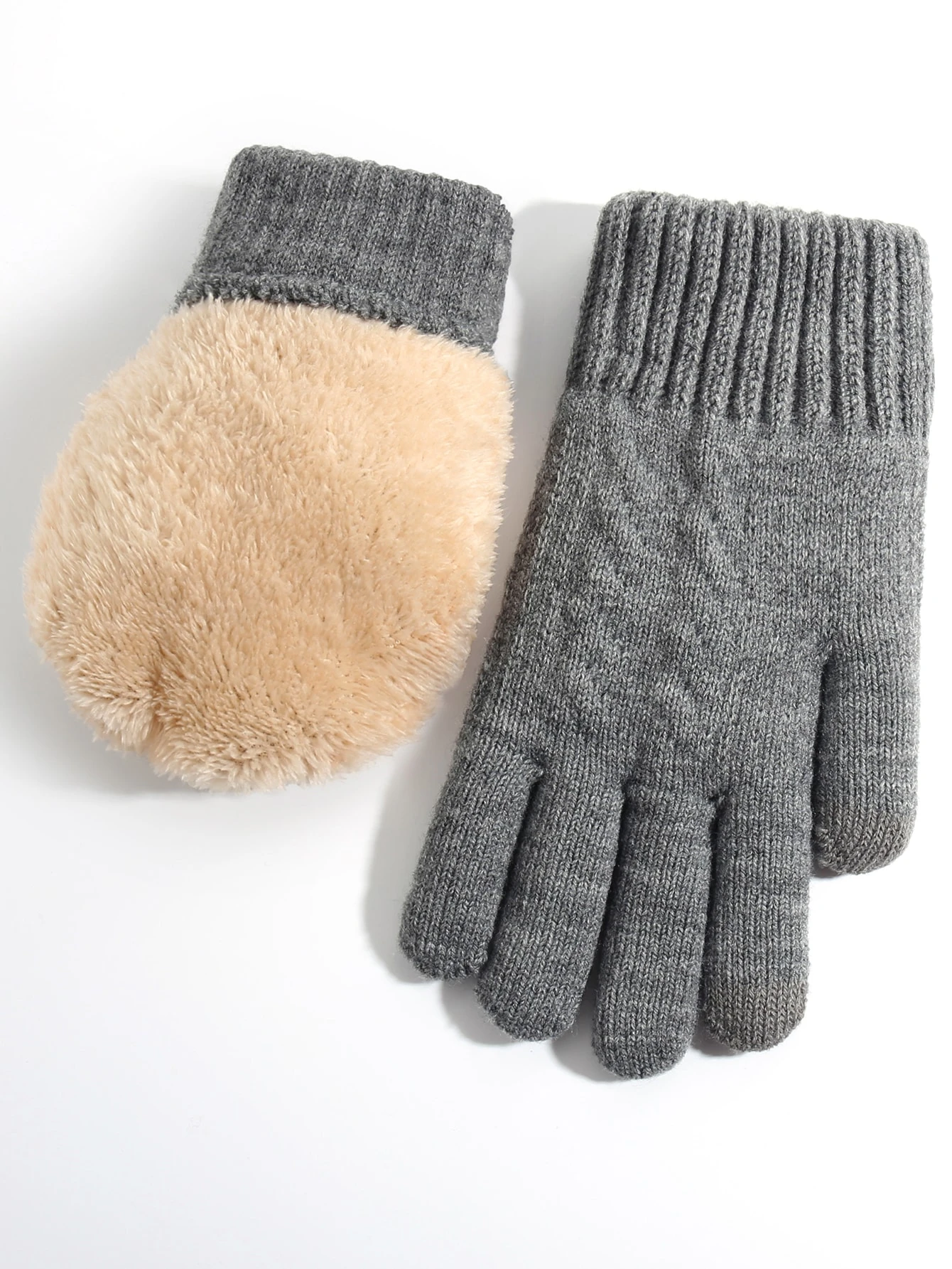 1 par de guantes gruesos de invierno de doble capa para pantalla táctil para mujer y 1 par de guantes de dedo completo de lana tejida, guantes cálidos para clima frío, adecuados para correr, conducir, ciclismo, fiesta, senderismo, escribir, jugar