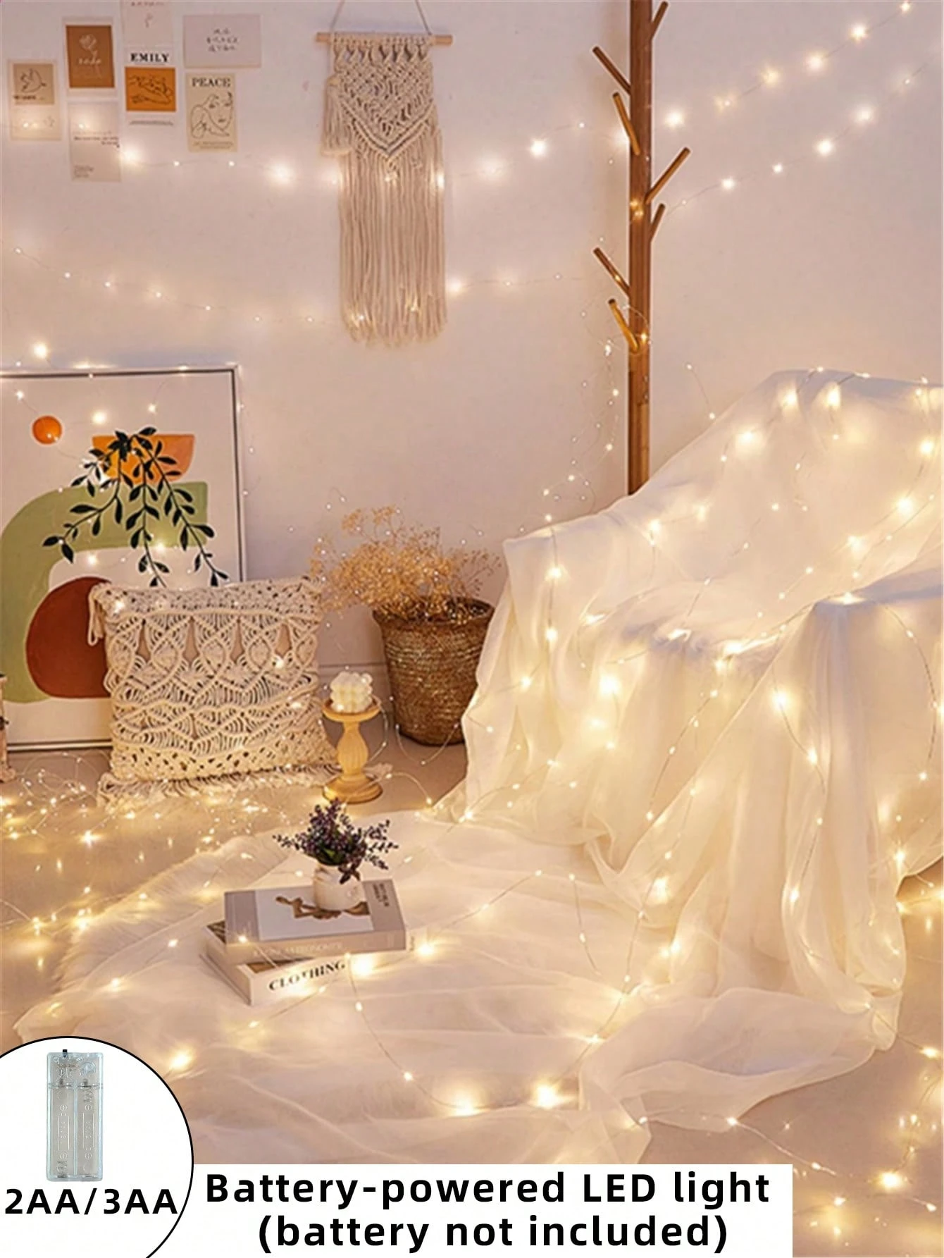 1 Pieza 10/30/50/100 Luces De Cadena Led De 1/3/5/10 M Con Línea, Para Decoración Romántica De La Habitación De Las Niñas, El Dormitorio, Bodas Y Ocasiones Festivas, Alimentado Con Caja De Batería