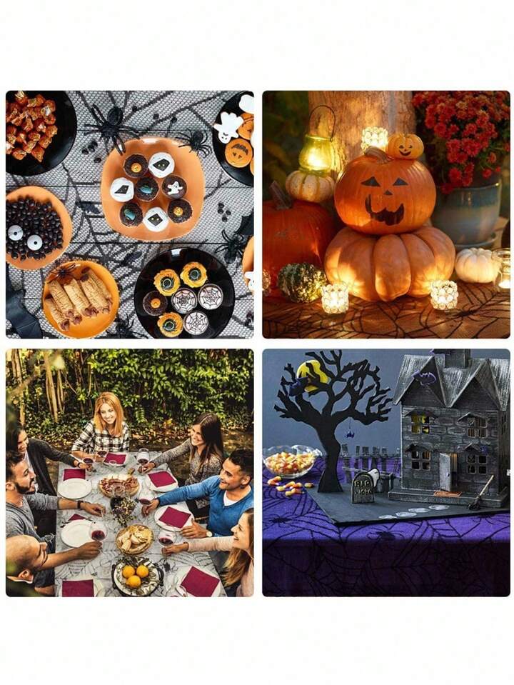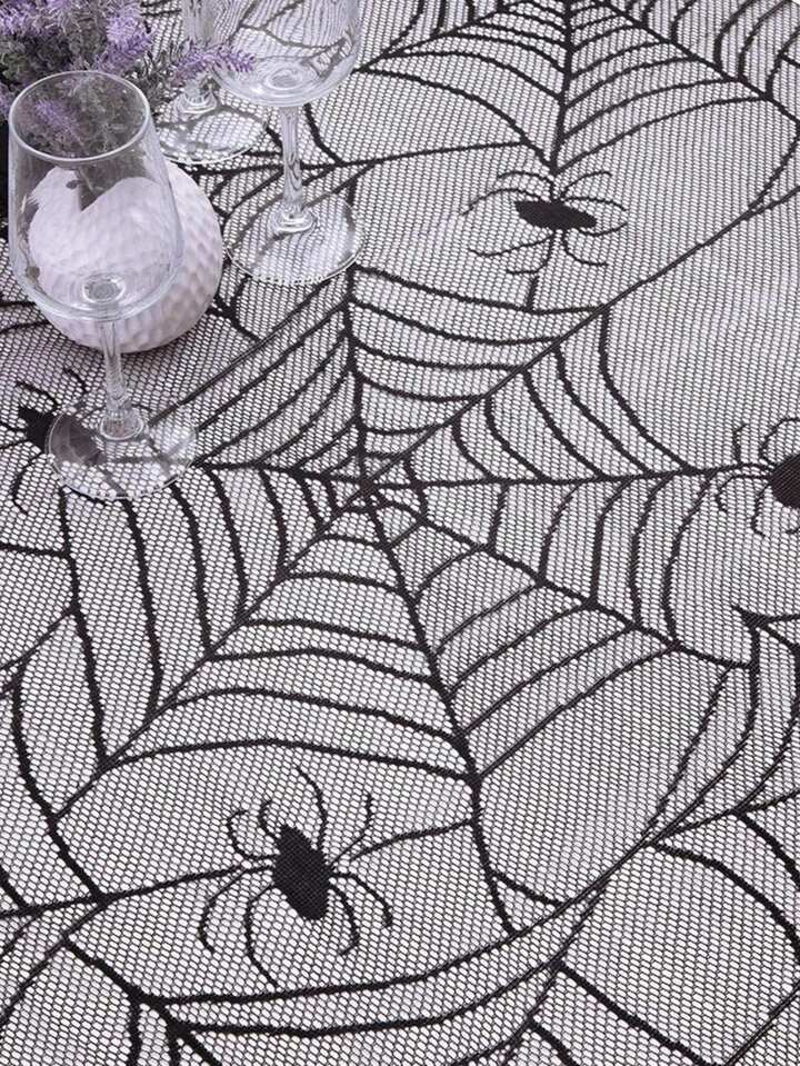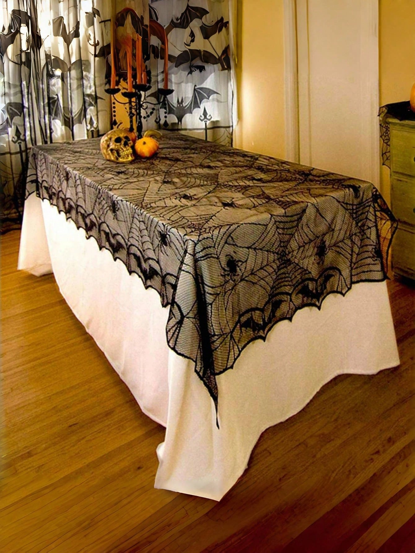 Goth 1 pieza Mantel de encaje negro, mantel estilo gótico, decoración de fiesta, mantel de Halloween - Mantel de encaje negro de Halloween con murciélago - Cubierta de mesa con tela de araña de festival de fantasmas para decoración familiar y de fiestas, decoración del hogar