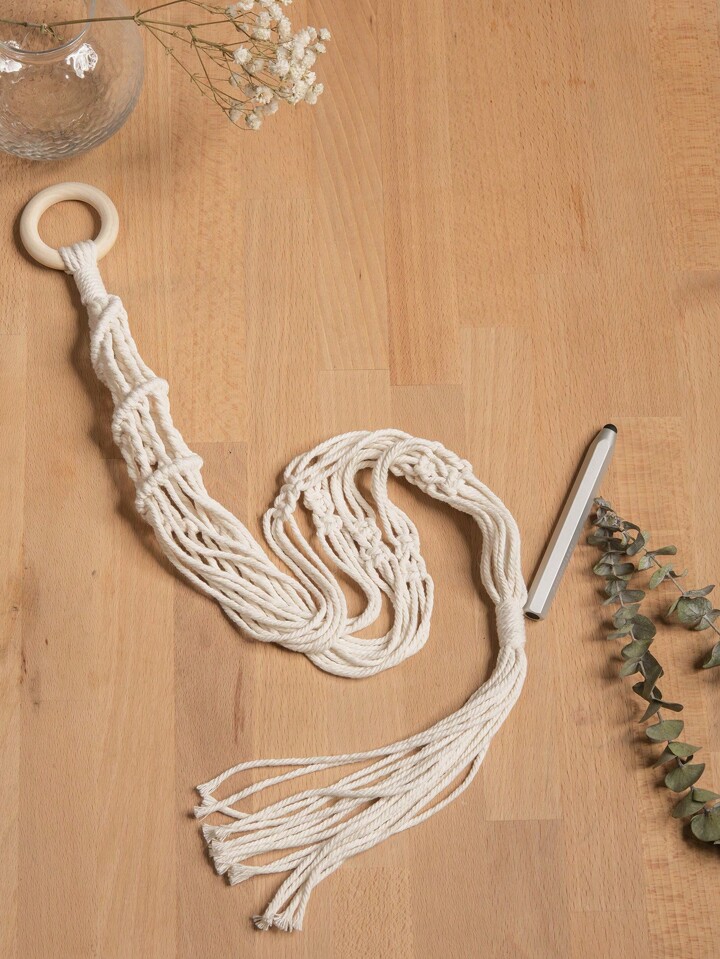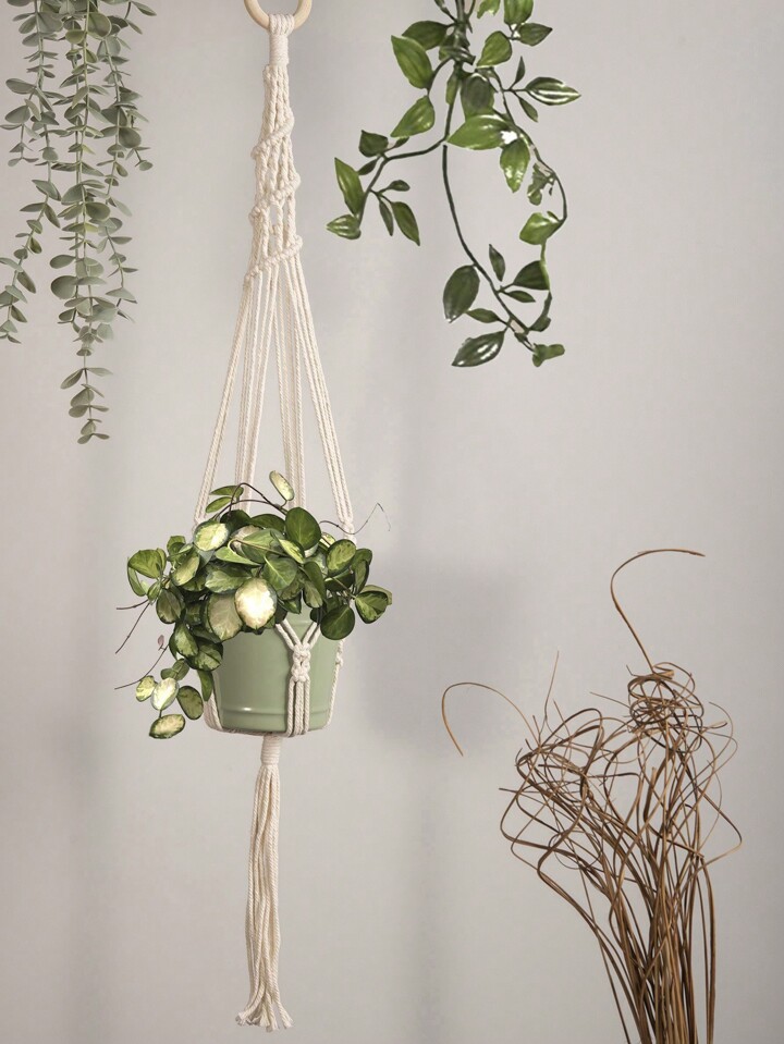 1 pieza Canasta colgante tejida a mano en forma espiral bohemia de cuerda multifuncional, bolsa de red (Maceta no incluida)
