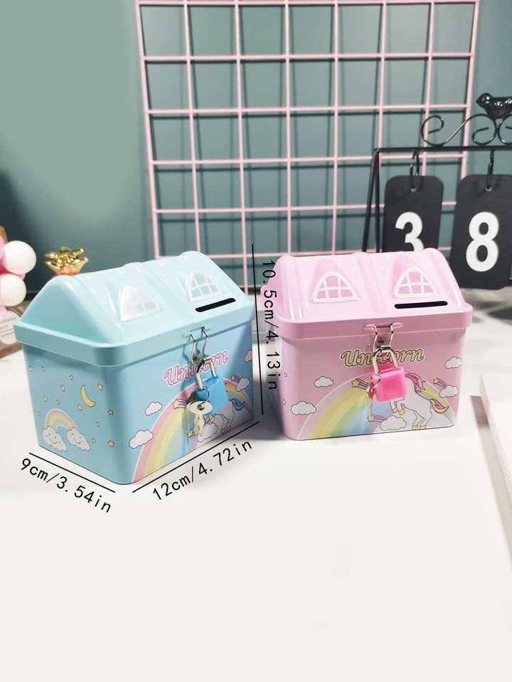1 pieza Caja de dinero con diseño de unicornio de dibujos animados y cerradura, caja de monedas con forma de casa linda, mejor opción para adolescentes y familia