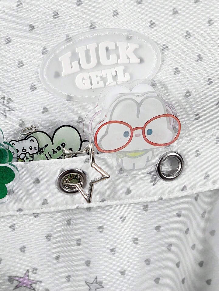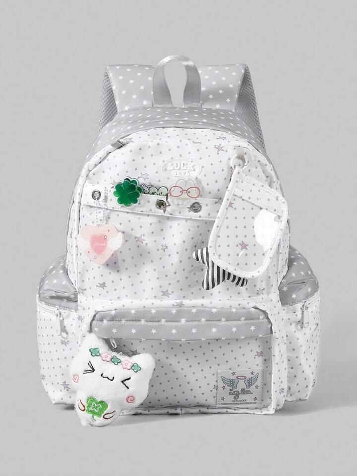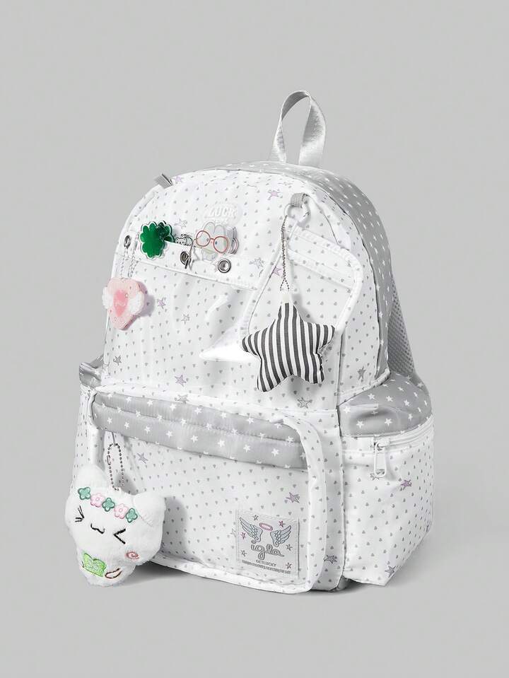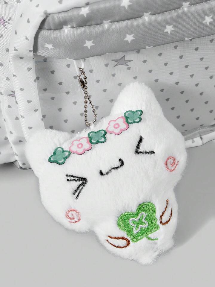 1 pieza Lindo colgante de gato de peluche Kawaii con trébol de la suerte, decoraciones de rayas, estrella, corazón y alas, muñeca minimalista de moda con múltiples bolsillos, adecuado para mochila de mujer, universidad, viajes y desplazamientos