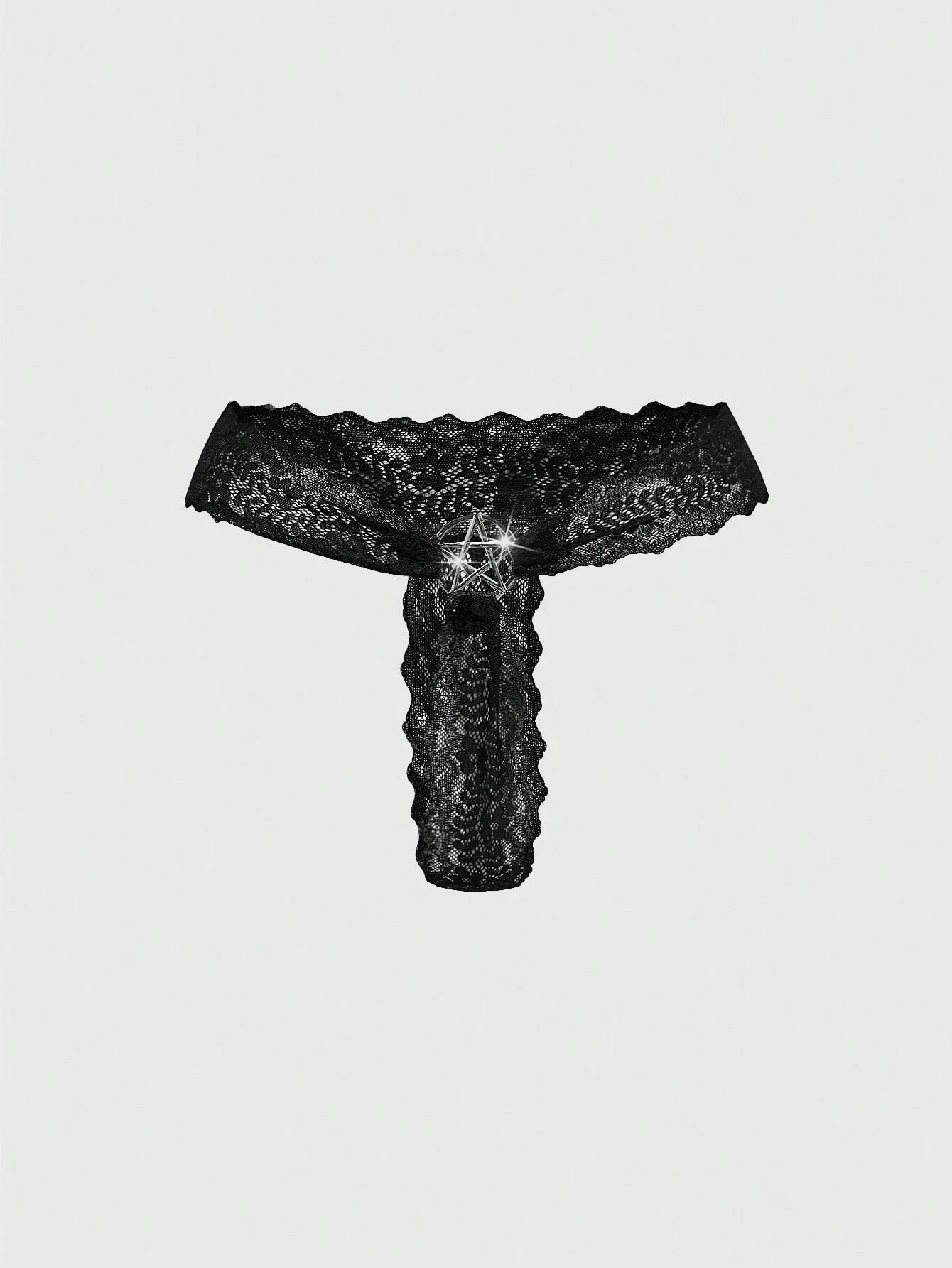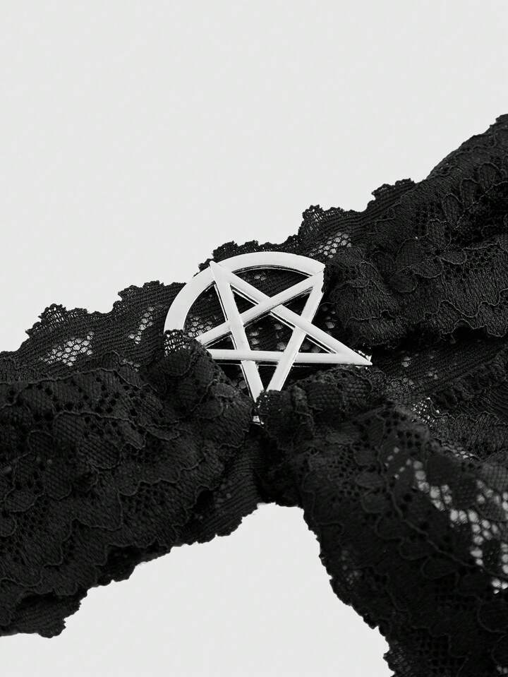 Goth 1 pieza Tanga de encaje con anillo de metal con estrella gótica