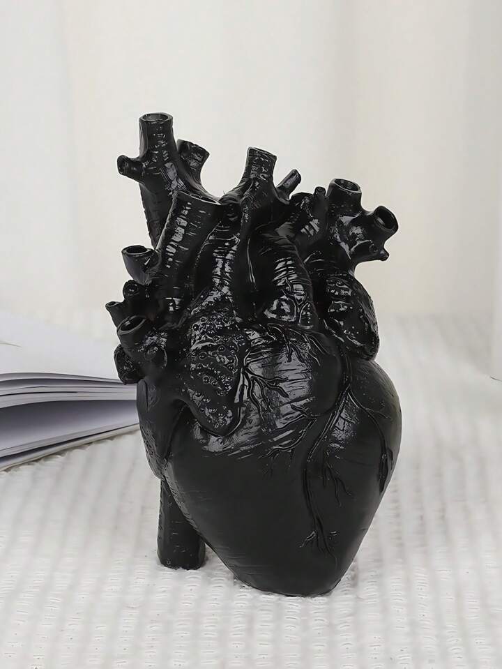 Goth 1 pieza Jarrón de decoración de corazón negro gótico, decoración de escritorio única, idea de regalo gótico, acento de hogar con estilo, utilería para fotografía, centropieza para mesa, decoración del hogar, jardín
