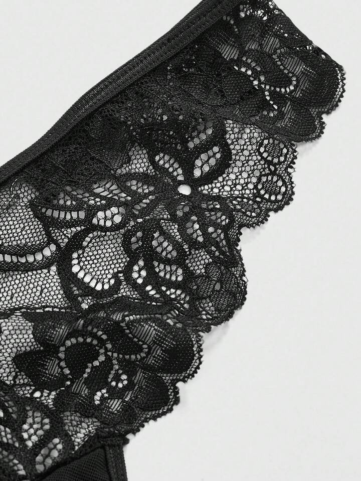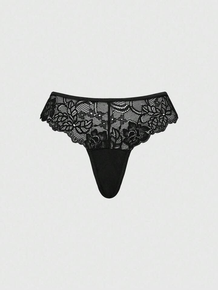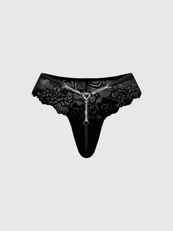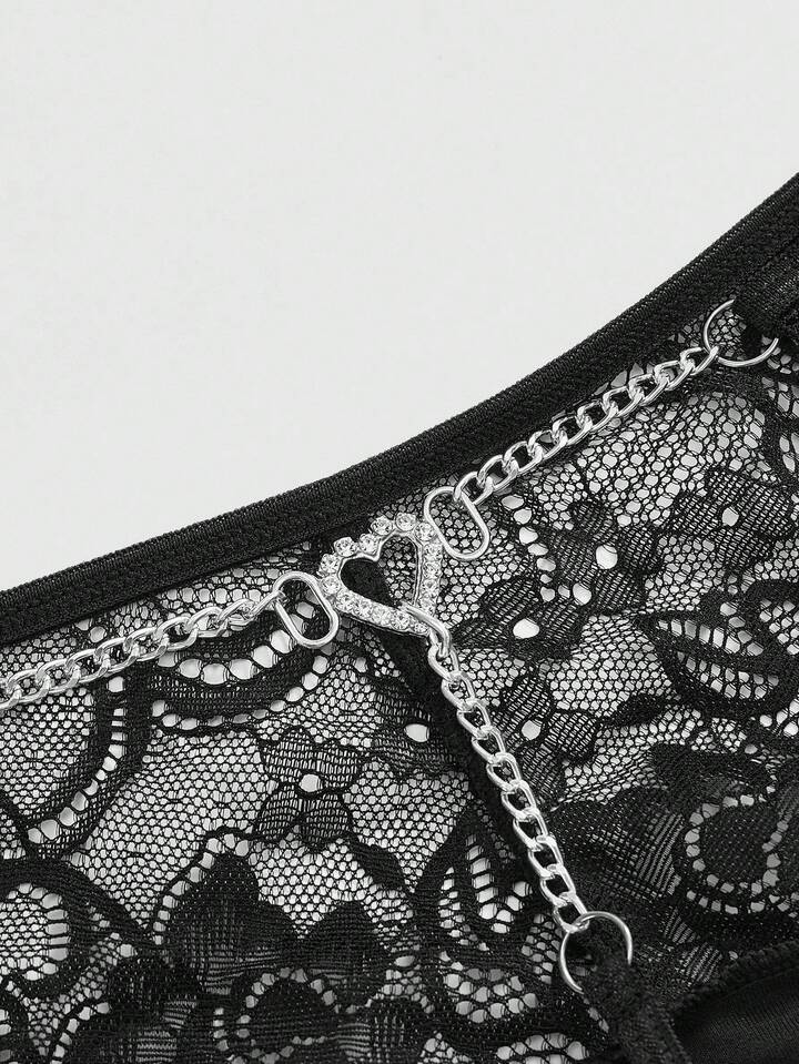 Goth 1 pieza Tanga con cadena metálica y corazón de encaje floral gótico