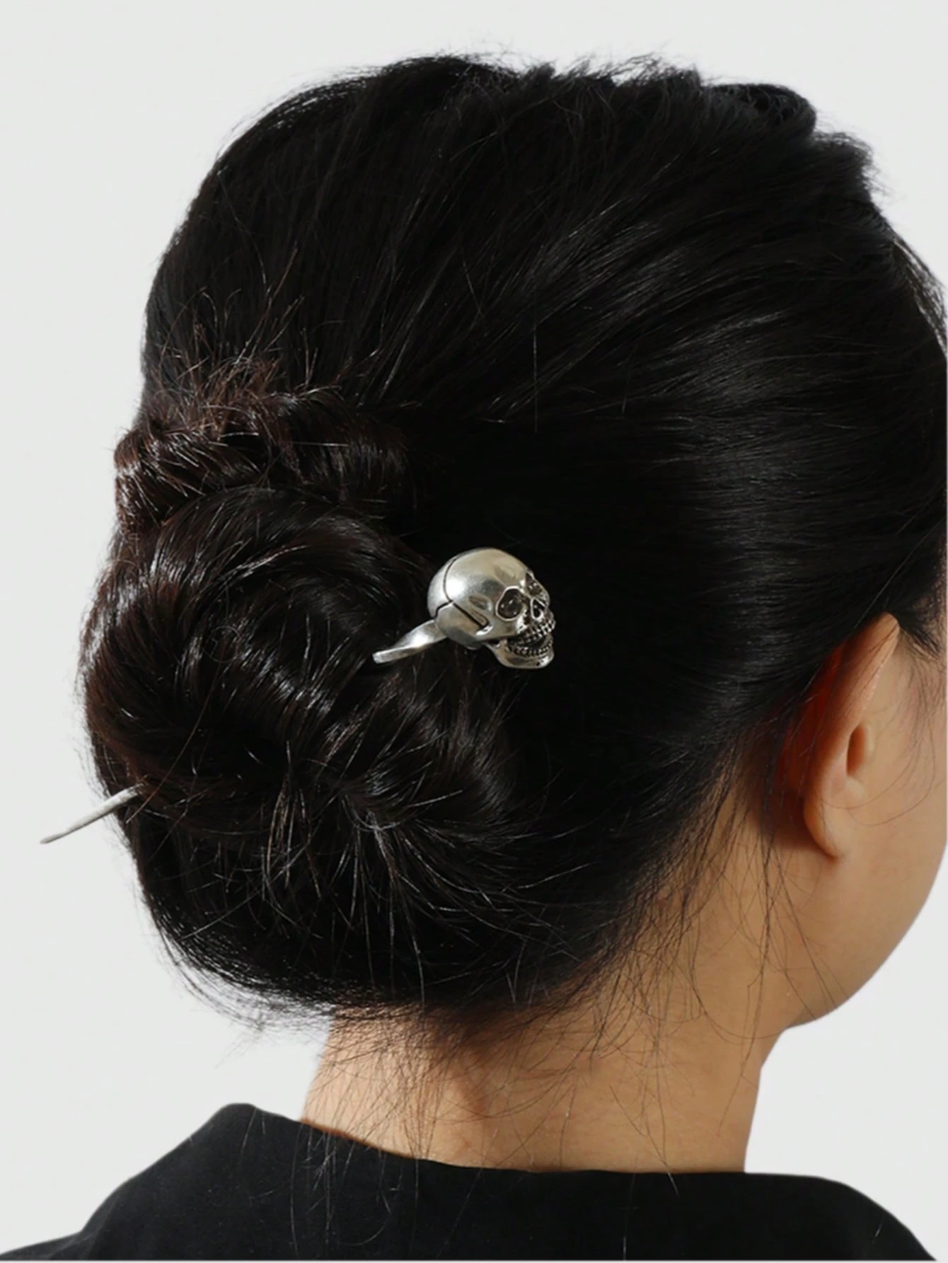 Goth 1 pieza Accesorio para el cabello con clip y palillo decorado con calavera gótica, adecuado para todas las estaciones, accesorio de peinado versátil para mujeres