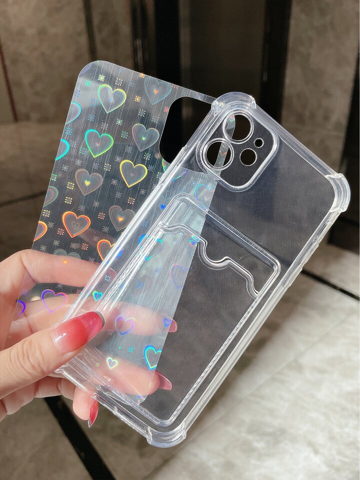 1 pieza Funda de teléfono de TPU transparente y resistente a golpes con portacards y 1 pieza de tarjeta de papel con corte láser en forma de corazón, 2 en 1 compatible con iPhone 14 Pro Max/15 Pro Max, resistente al agua, a caídas y a arañazos