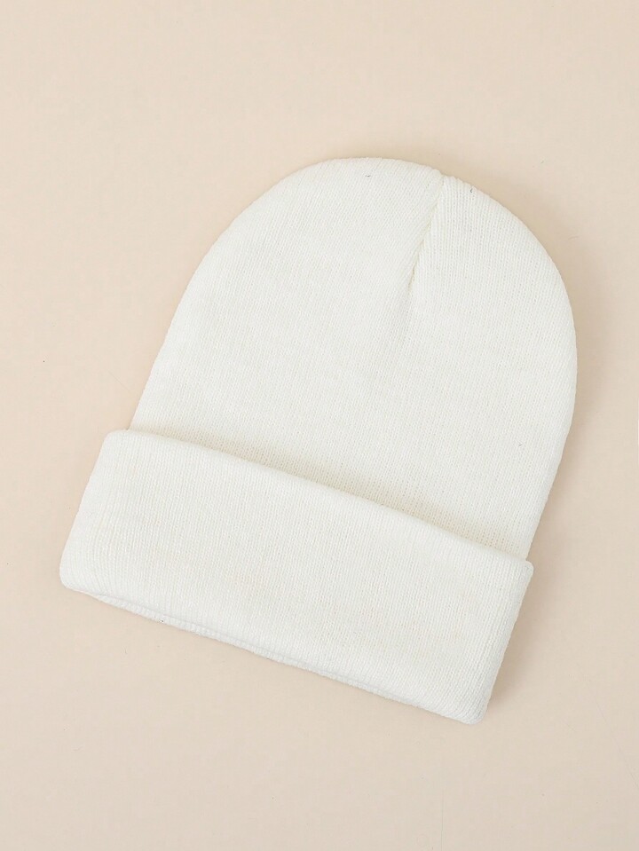 1 pieza Gorro de punto para mujeres blanco unicolor tejido , adecuado para uso diario