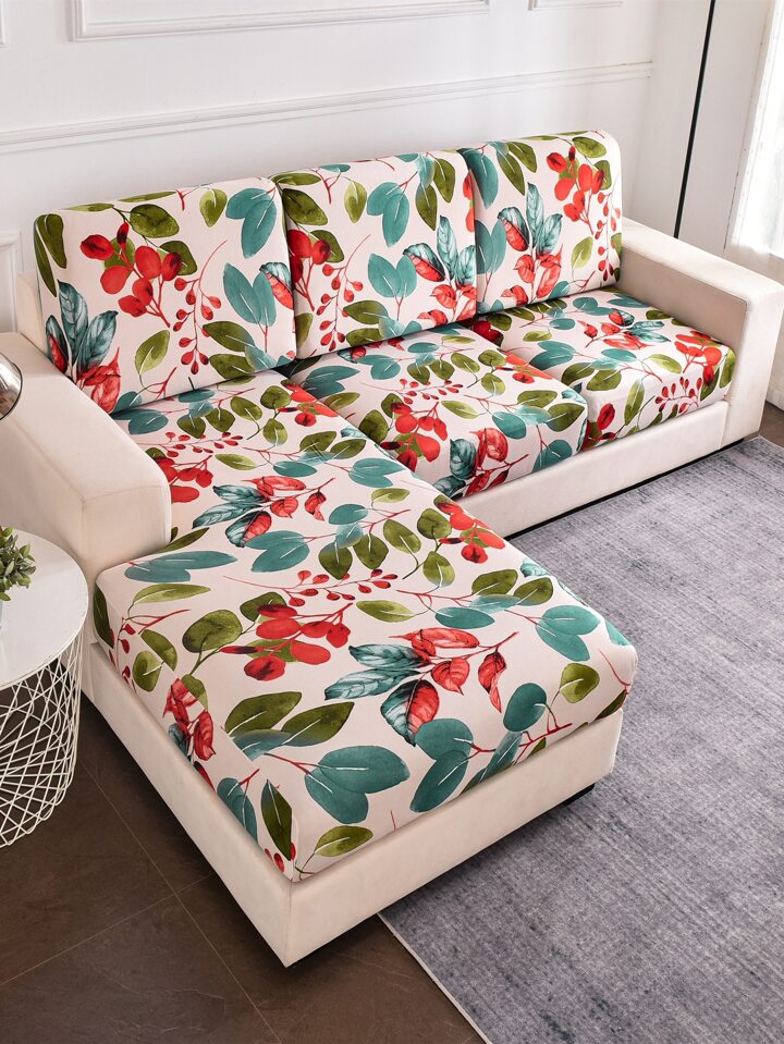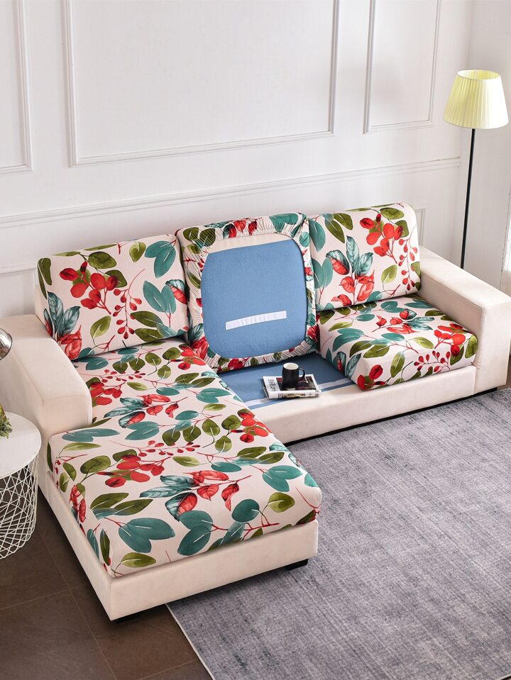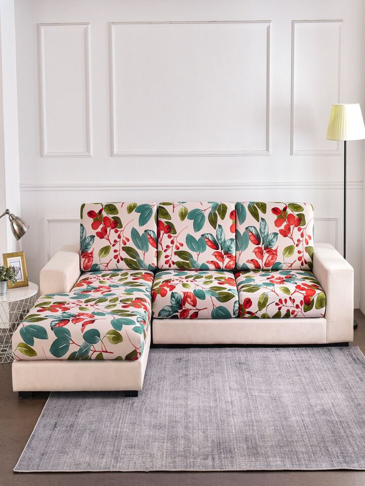 1 pieza Funda de cojín para asiento de sofá con estampado de hoja elástico