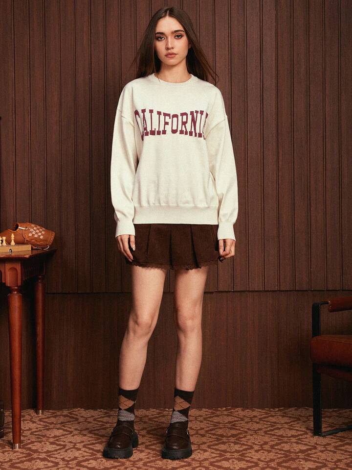 1 pieza Jersey con estampado de letra de hombros caídos