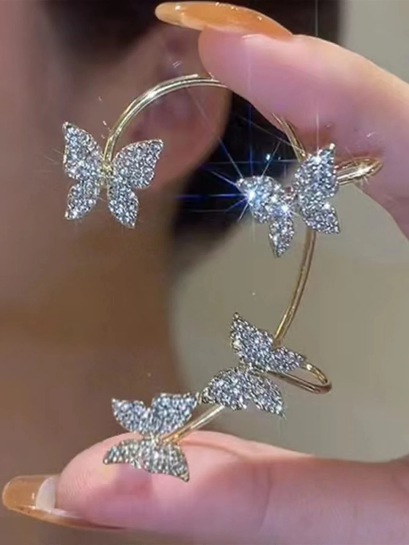 1 pieza Envoltura de oreja con diamante de imitación con diseño de mariposa
