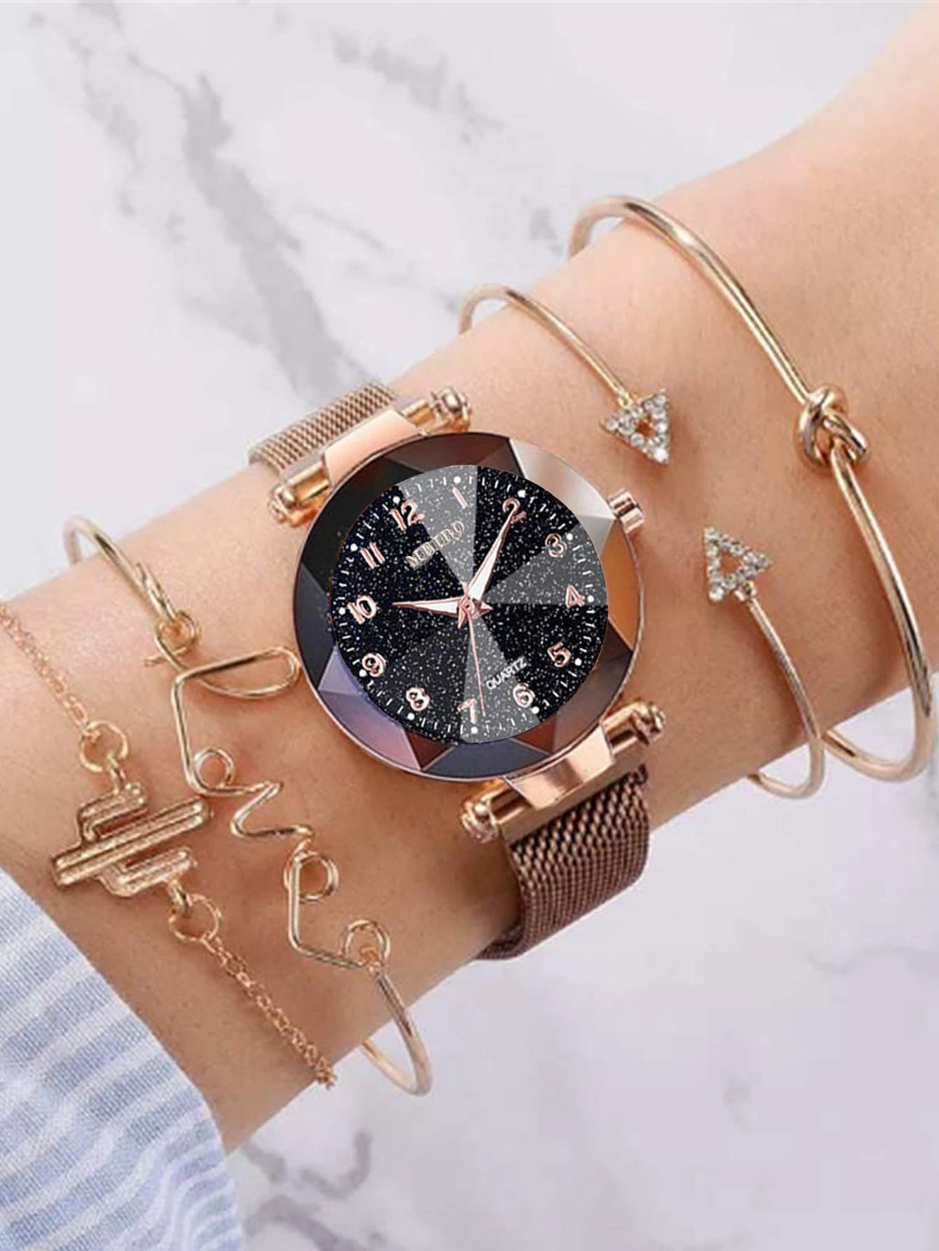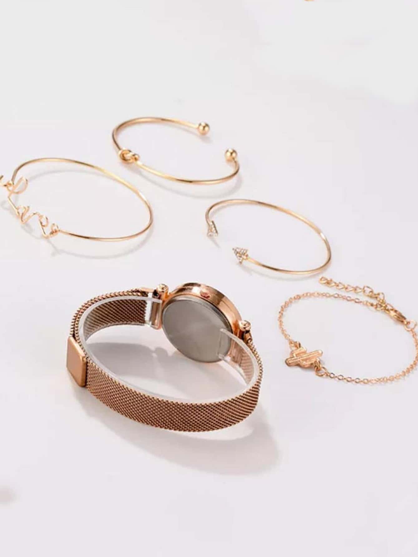 1 pieza reloj de cuarzo de puntero redondo con 4 piezas brazalete