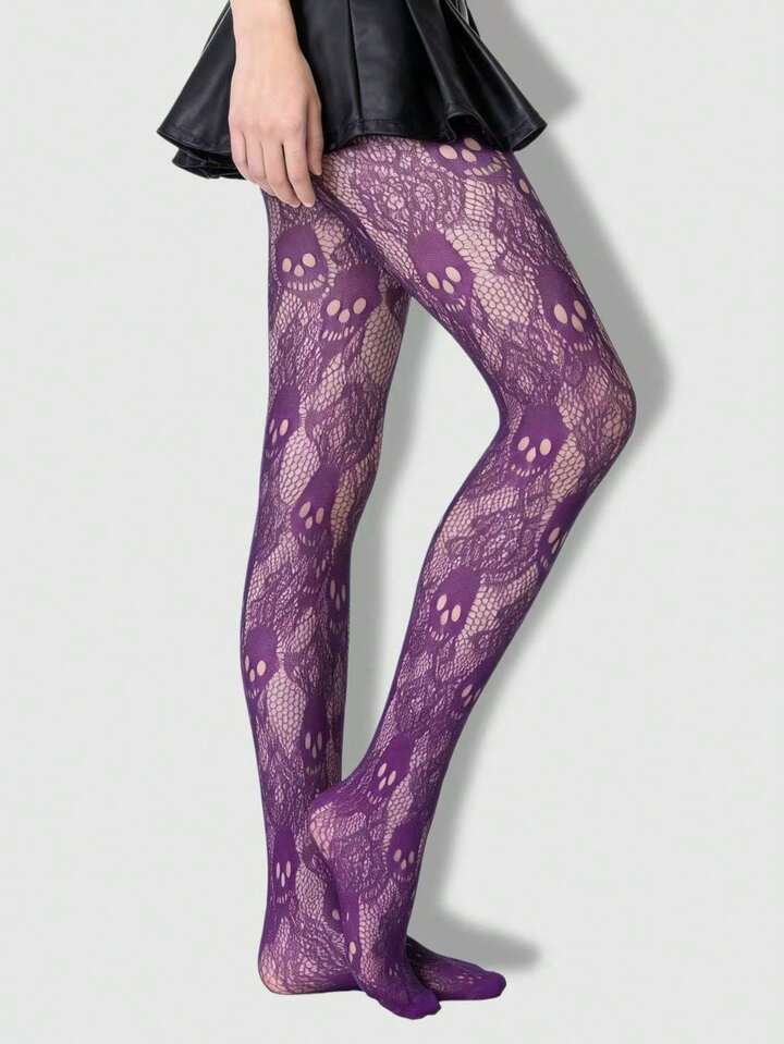 1 pieza Medias/Pantis/Medias de rejilla sexy con diseño de calavera y rosa para mujeres