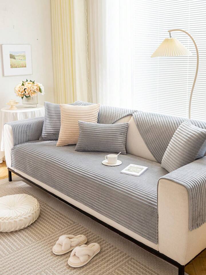 1 Pieza Cojín De Sofá De Franela Espesa, Estilo Simple Y Moderno Con Funda De Color Sólido Antideslizante De Cuatro Estaciones, Suave, Cómodo, Agradable A La Piel, Resistente A Los Arañazos De Gato, Cálido Y Acogedor, Adecuado Para Otoño E Invierno (se Vende Por Separado)