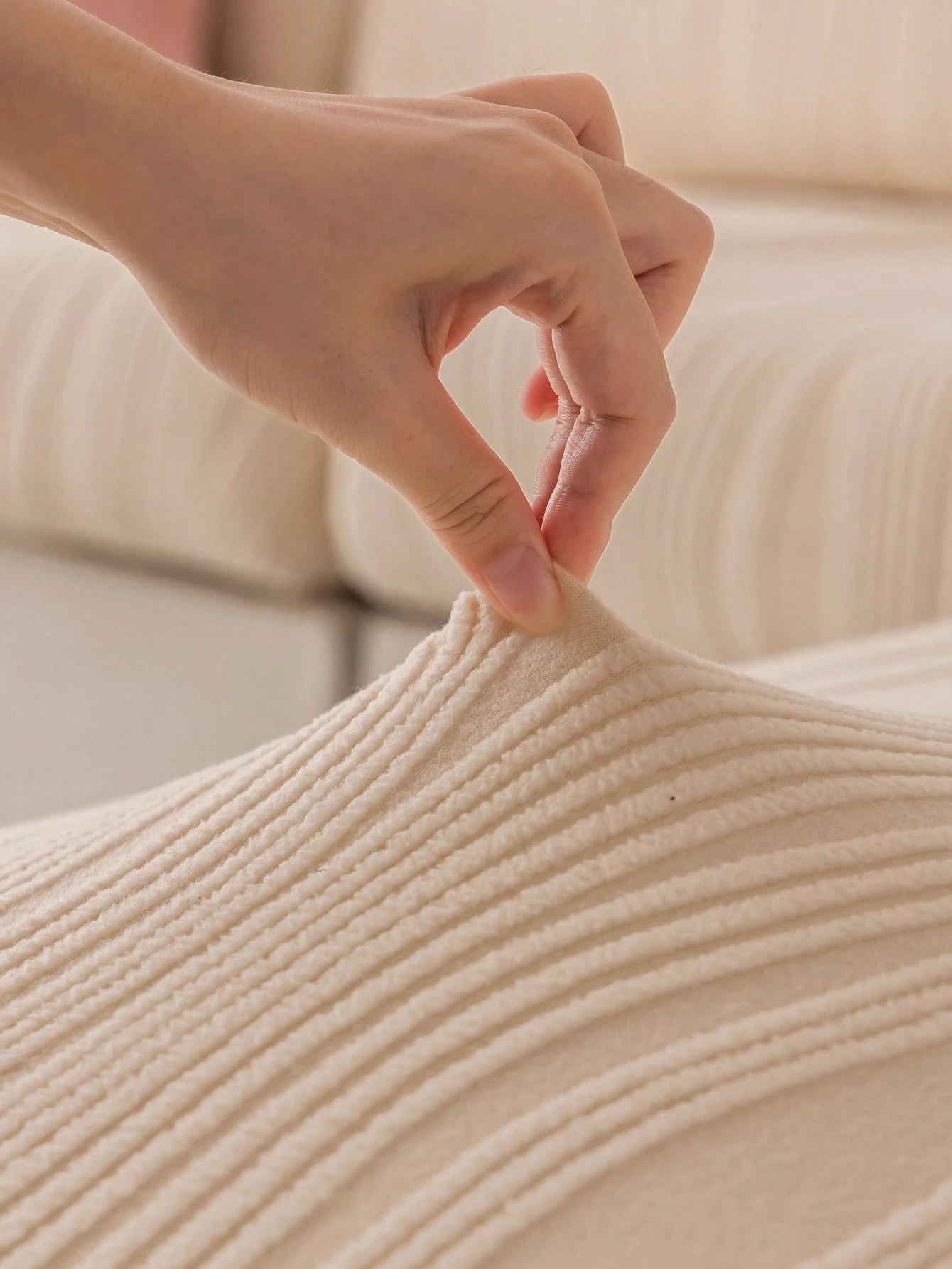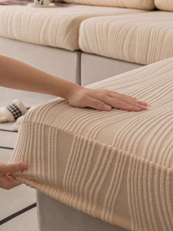 1 Pieza Universal Funda Elástica Para Sofá, Cobertura Completa Resistente Al Deslizamiento De Rayas Beige En Otoño E Invierno, Funda De Cojín Gruesa Para Sofá, Lavable A Máquina, A Prueba De Polvo, Resistente A Las Manchas Y Al Desvanecimiento