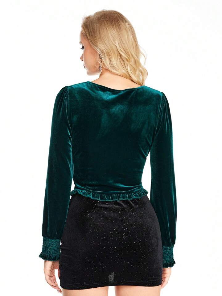 1 pieza Blusa de escote en V con bordado de ojo de terciopelo con estilo hippie glamoroso para mujer