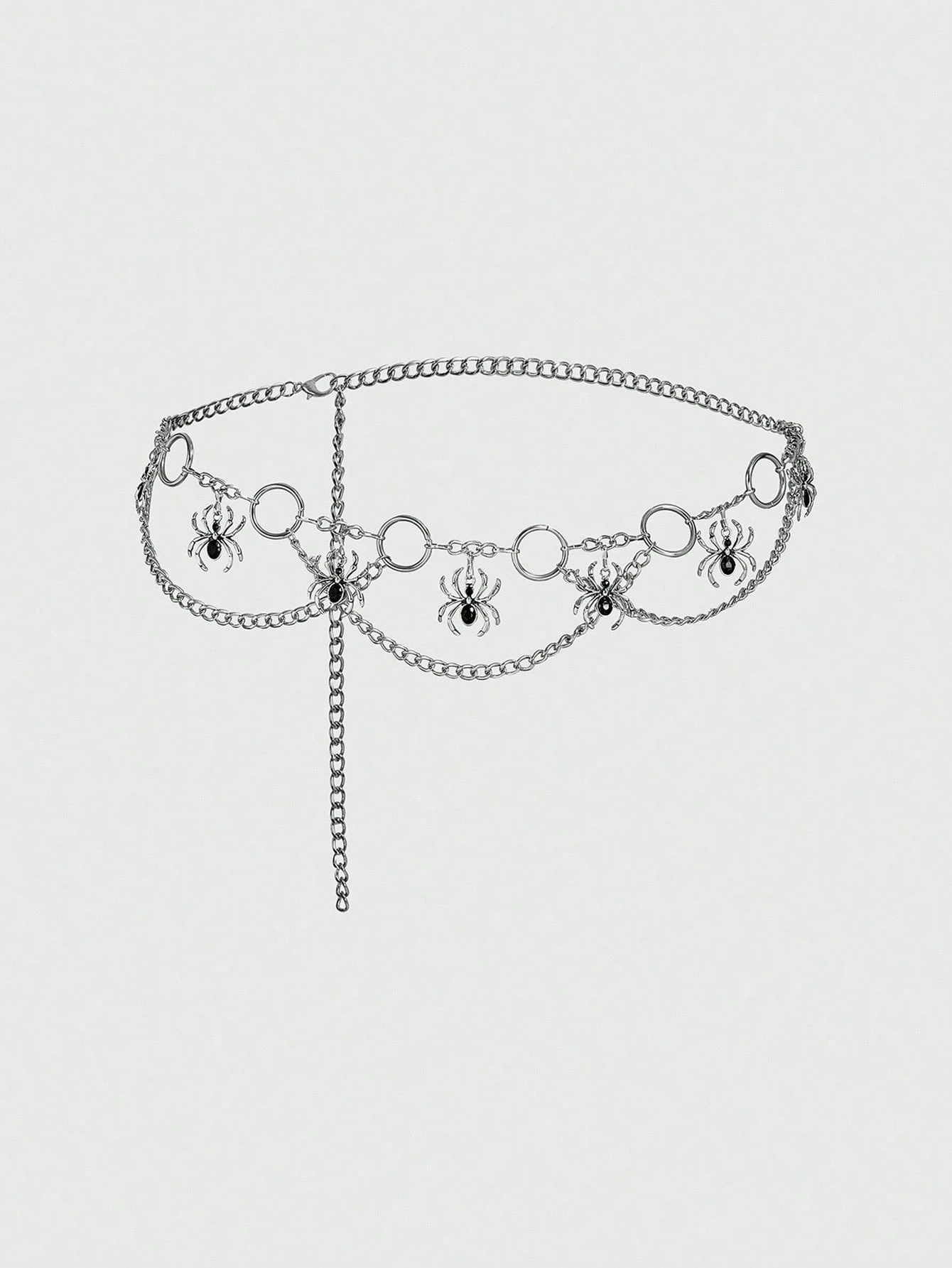 Goth 1 pieza Cinturón de cadena de mujer con araña de cristal circular plateada, decoración para vestidos góticos oscuros, adecuado para Halloween, uso diario versátil