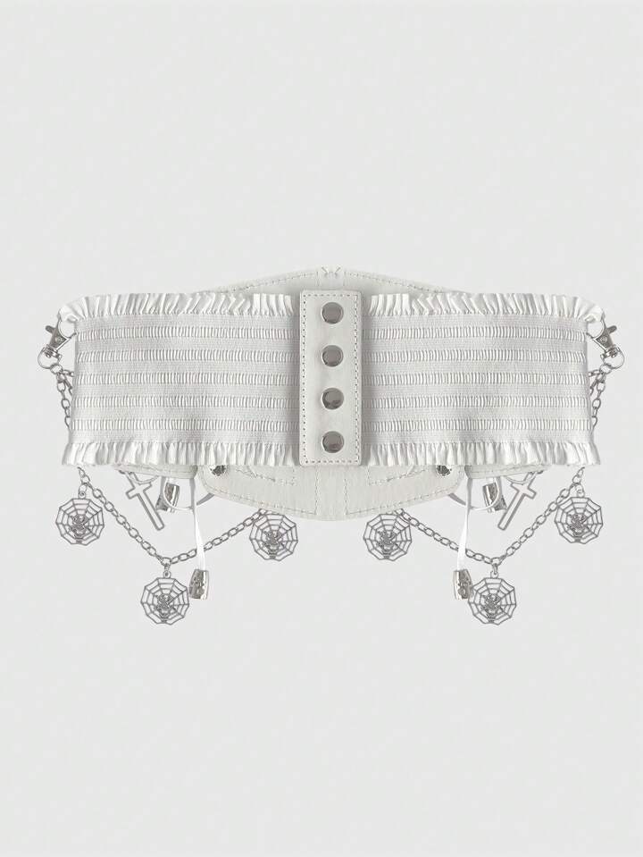 Goth 1 pieza Accesorio de vestido con banda elástica de cintura, decoración de estilo gótico con cadena de encaje blanco, esqueleto, cruz y lazo, decoración de atuendo de Halloween